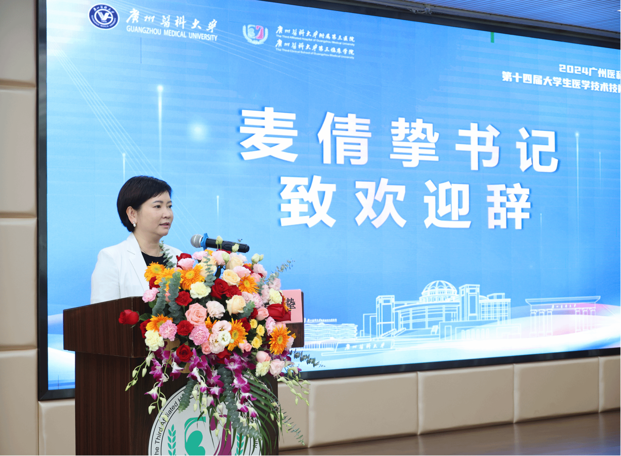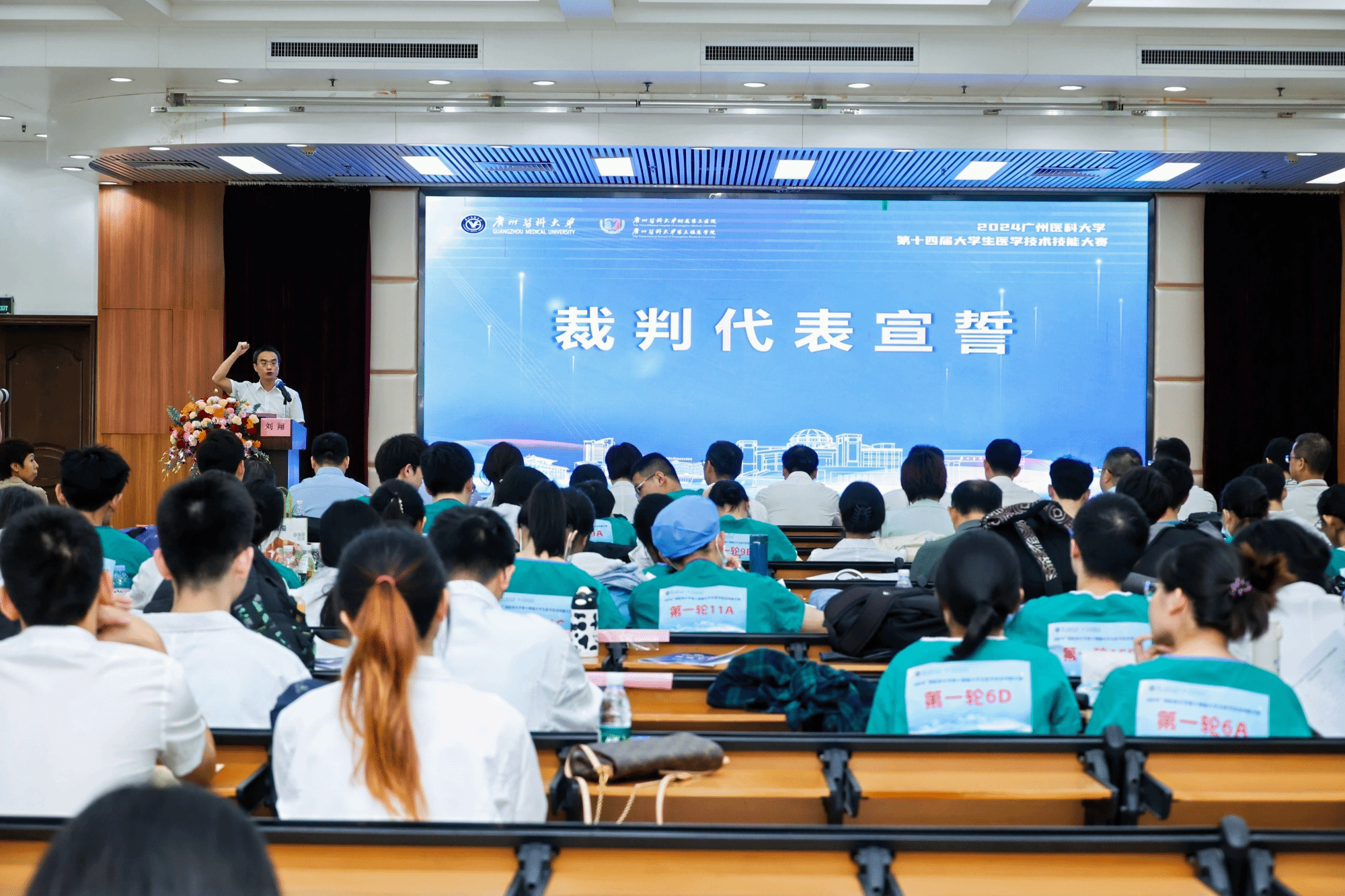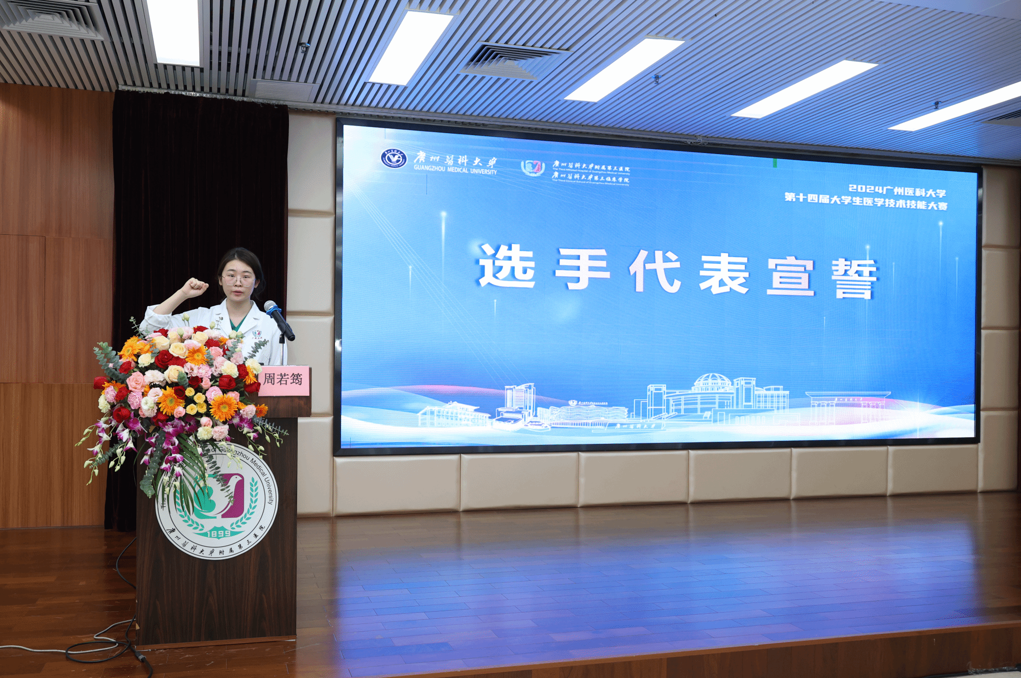 第三临床学院党委书记麦倩挚介绍了大赛举办的相关背景,鼓励参赛选手全力以赴、奋力拼搏,真正做到“以赛促学、以学促用”,将所学知识和技能运用到实际工作中去。