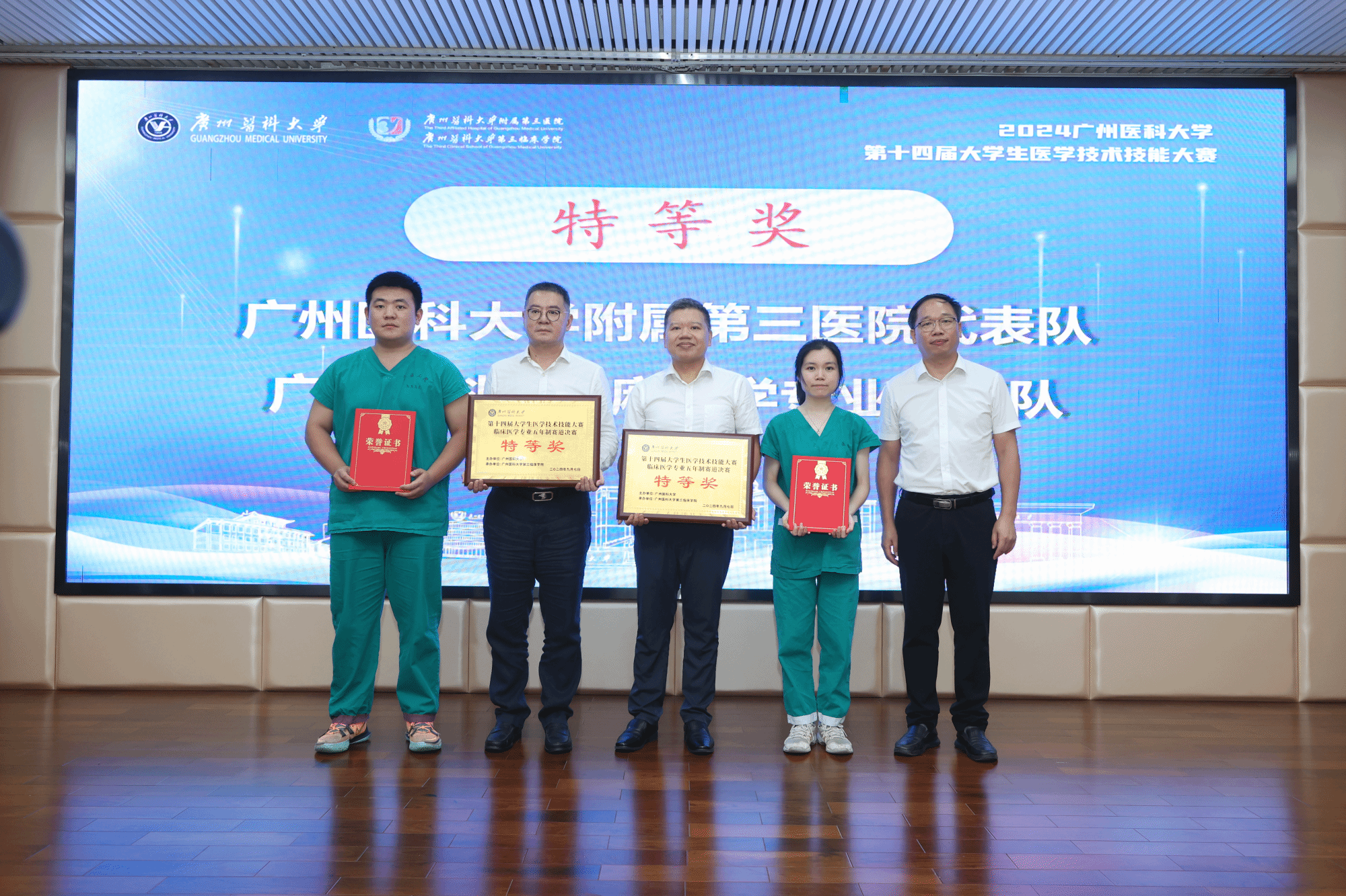 9月7日,Beat365中文官方网站第十四届大学生医学技术技能大赛决赛举行。经过激烈角逐,最终,附属第三医院代表队和麻醉学专业代表队获特等奖,陈瑾等9位同学获单项奖,第三临床学院创新班代表队的伍昭同学荣获“儿科学技能操作项目个人单项奖”。