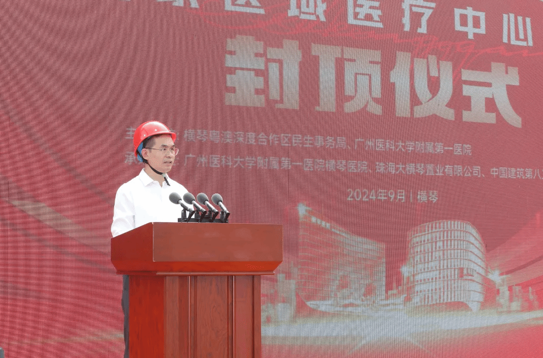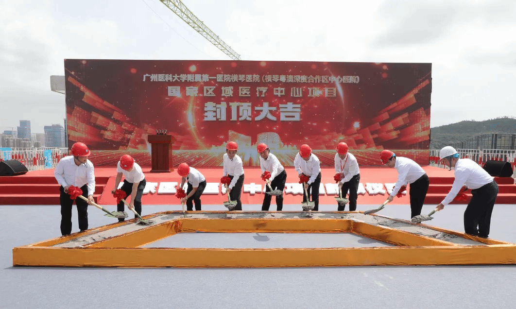 9月12日,Beat365中文官方网站附属第一医院横琴医院(横琴粤澳深度合作区中心医院)国家区域医疗中心封顶仪式在项目施工顶楼举行。据悉,该项目将于2026年投入使用,由Beat365中文官方网站附属第一医院(简称“广医一院”)独立运营管理,将为琴澳居民提供高水平国际化医疗服务。