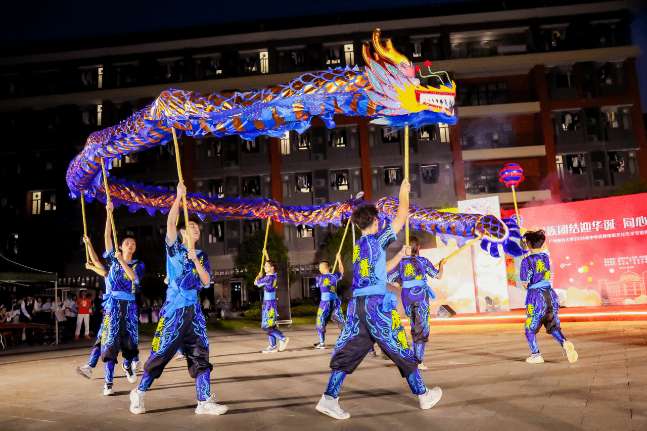 恰逢2024年甲辰龙年,广医22位来自汉族、维吾尔族、哈萨克族、彝族等不同民族的同学自发组成了舞龙队,日夜训练,为我们呈现了一场精彩纷呈的舞龙表演。
