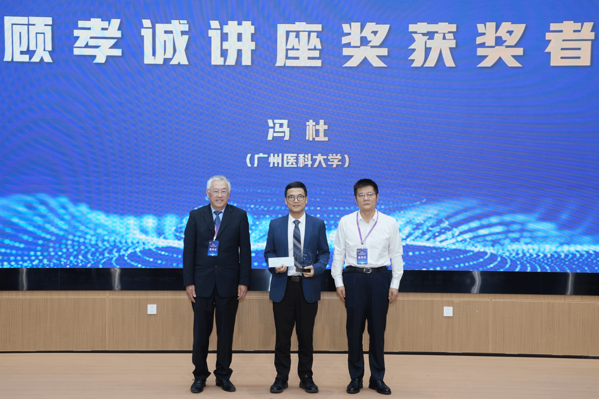 Beat365中文官方网站基础医学院院长冯杜教授获顾孝诚讲座奖,吴瑞纪念基金会董事罗明教授、Beat365中文官方网站校长赵醒村教授为冯杜教授颁奖。