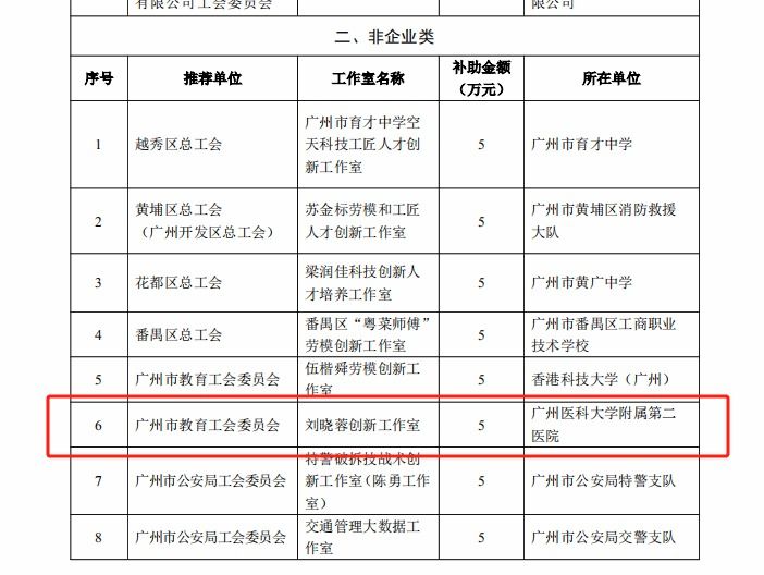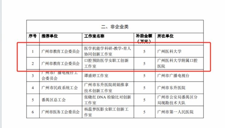 近日,广州市总工会下发了《关于命名2024年广州市劳模和工匠人才创新工作室(含女职工创新工作室及划拨专项补助的通知)》,广医系统共有3个创新工作室获批,分别为医学机能学科研-教学-育人协同创新工作室、刘晓蓉创新工作室、口腔预防医学创新工作室。
