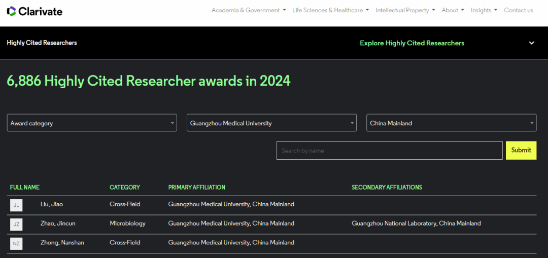 赵金存教授是继2021、2022、2023年后,第四次入选科睿唯安全球“高被引科学家”名单;钟南山院士是继2022、2023年后,第三次入选;柳娇研究员则是今年首次入选。