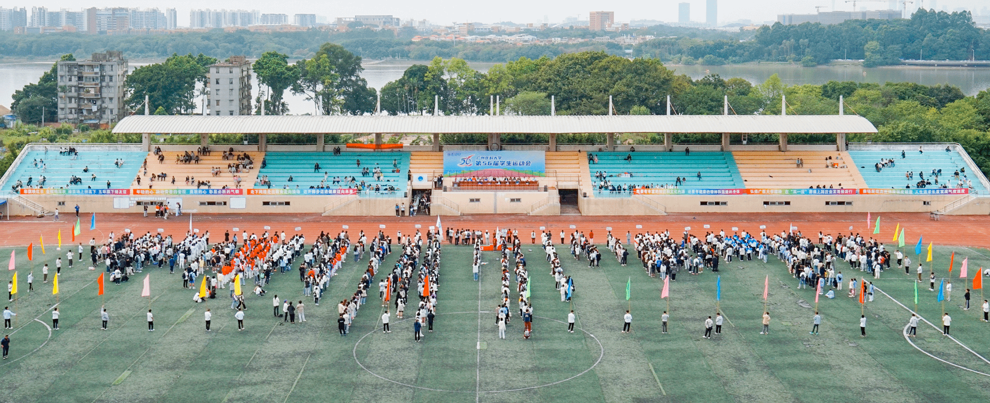 11月22日至23日,Beat365中文官方网站第56届学生运动会在番禺校区举行。阳光照耀广医校园,绿茵场上各方阵排列整齐,运动健儿们,早已积蓄力量,期待这场速度与激情的比拼。