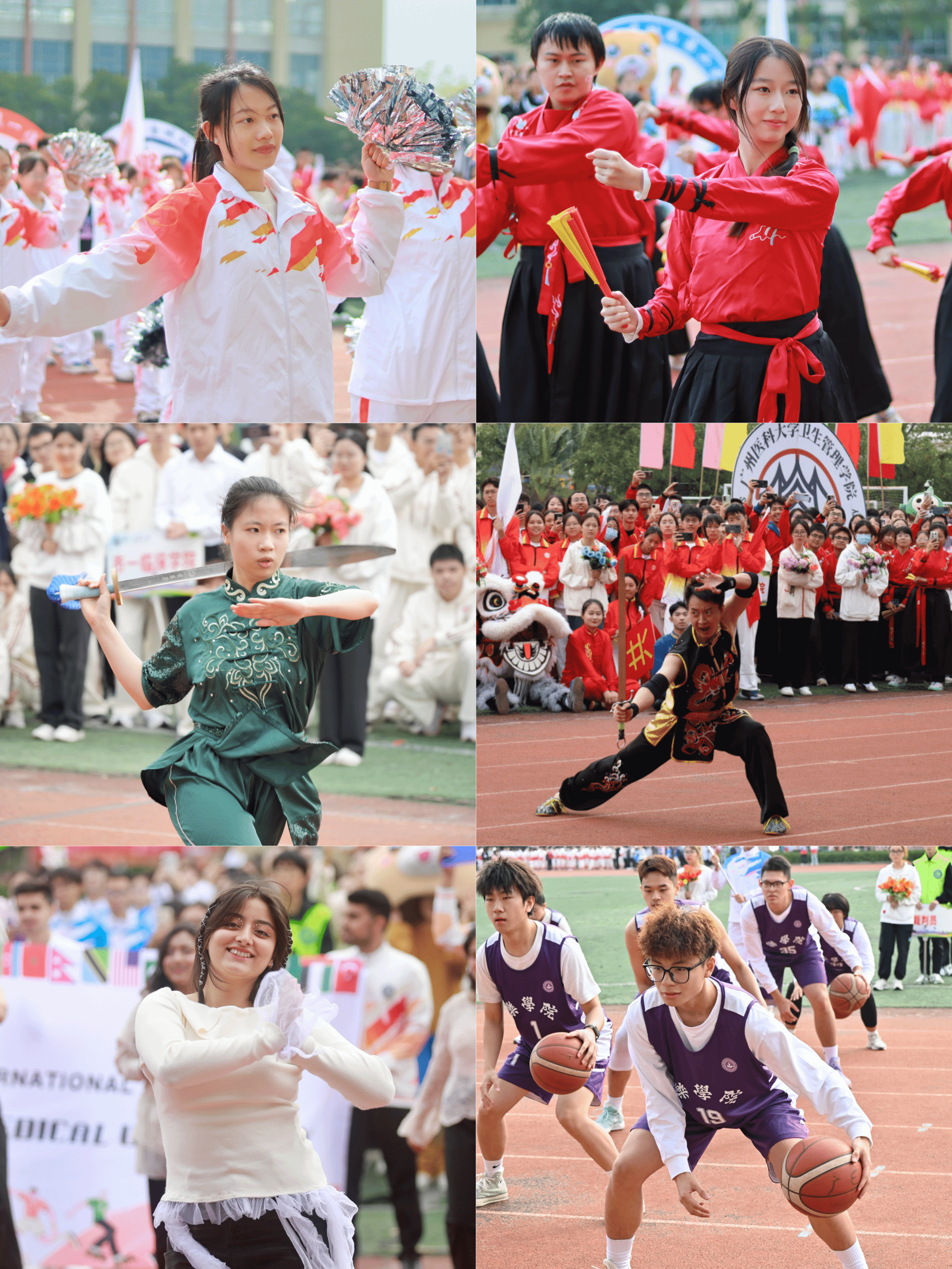 开幕式宣告了竞赛的正式开始。赛场上,广医运动健儿身姿矫健,热情如火,吹响坚持与勇气的号角。在短短两天里,他们用汗水与拼搏定格了许多个耀眼的瞬间。