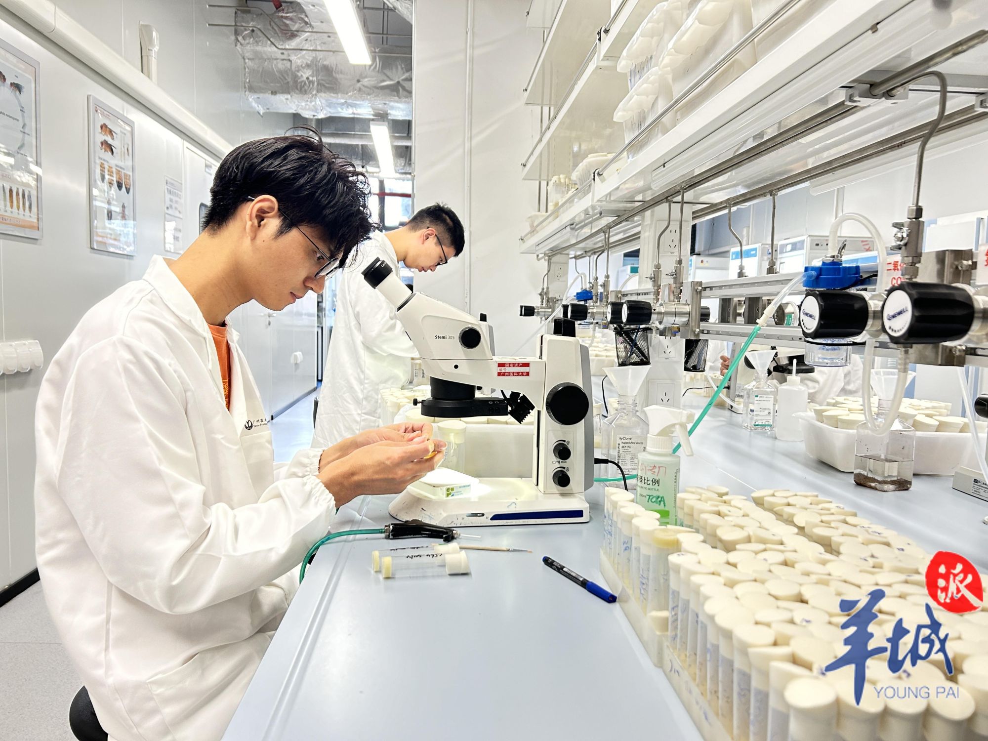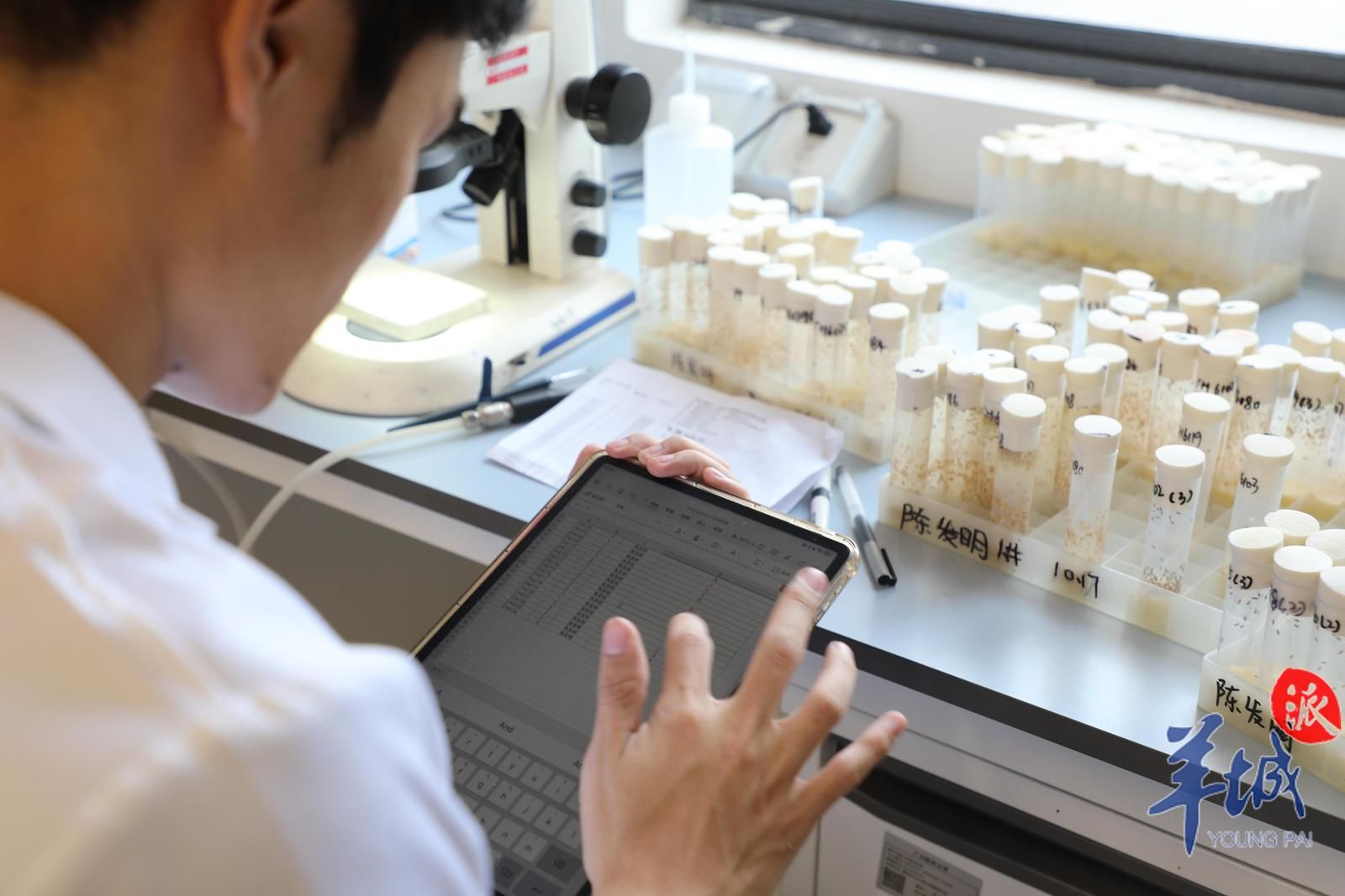 免疫所工作人员在观察果蝇和统计相关数据 图 | 赖恩萌