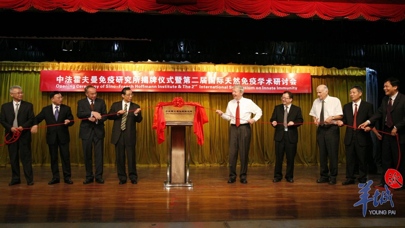 2013年10月12日,广州霍夫曼免疫研究所揭牌仪式(右五为霍夫曼教授)