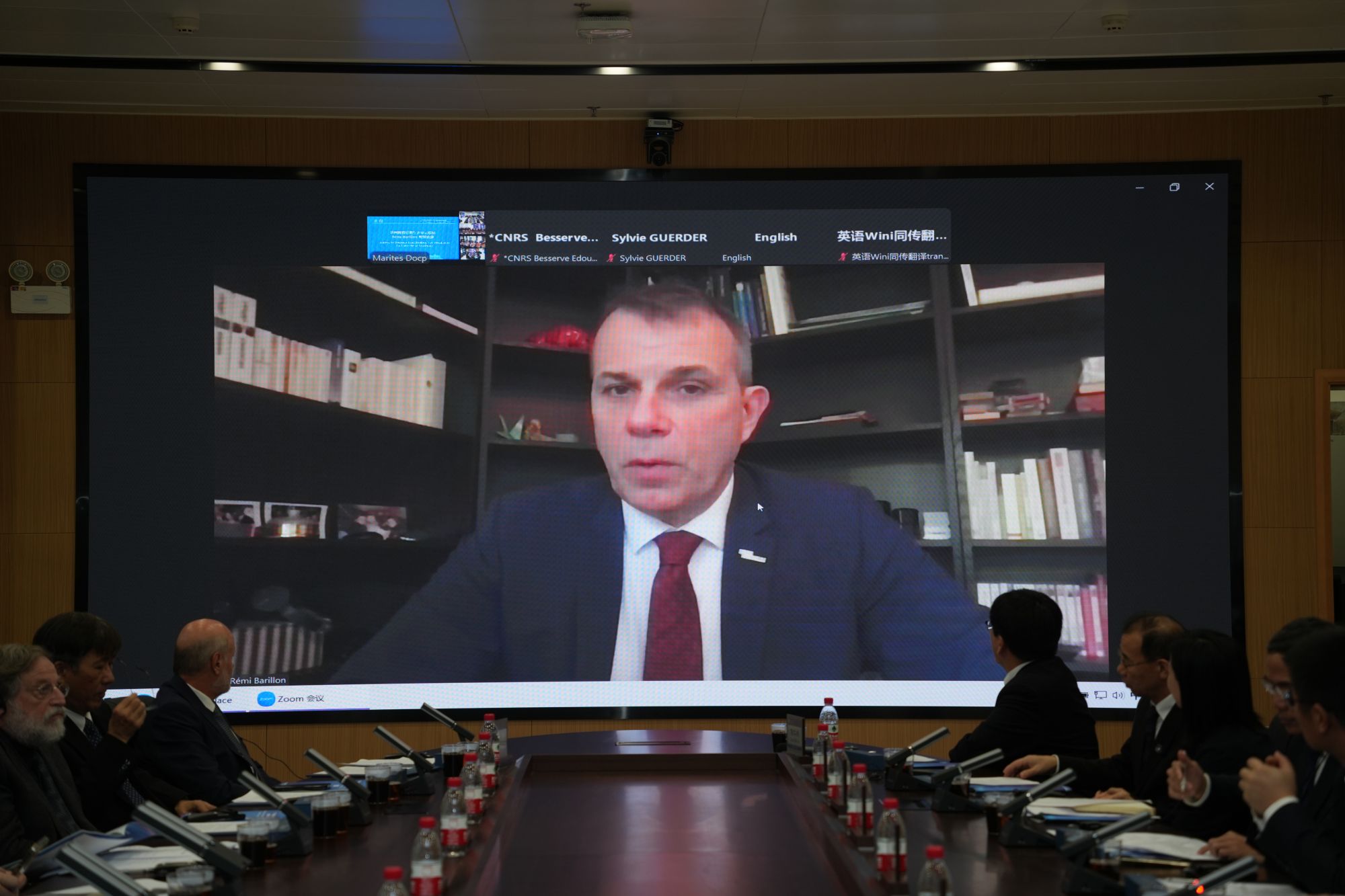 法国国家科学研究中心欧洲和国际事务部副主任Edouard Besserve介绍了该中心的基本情况,他期望双方继续开展精诚合作,在未来进一步取得更加丰硕的研究成果。