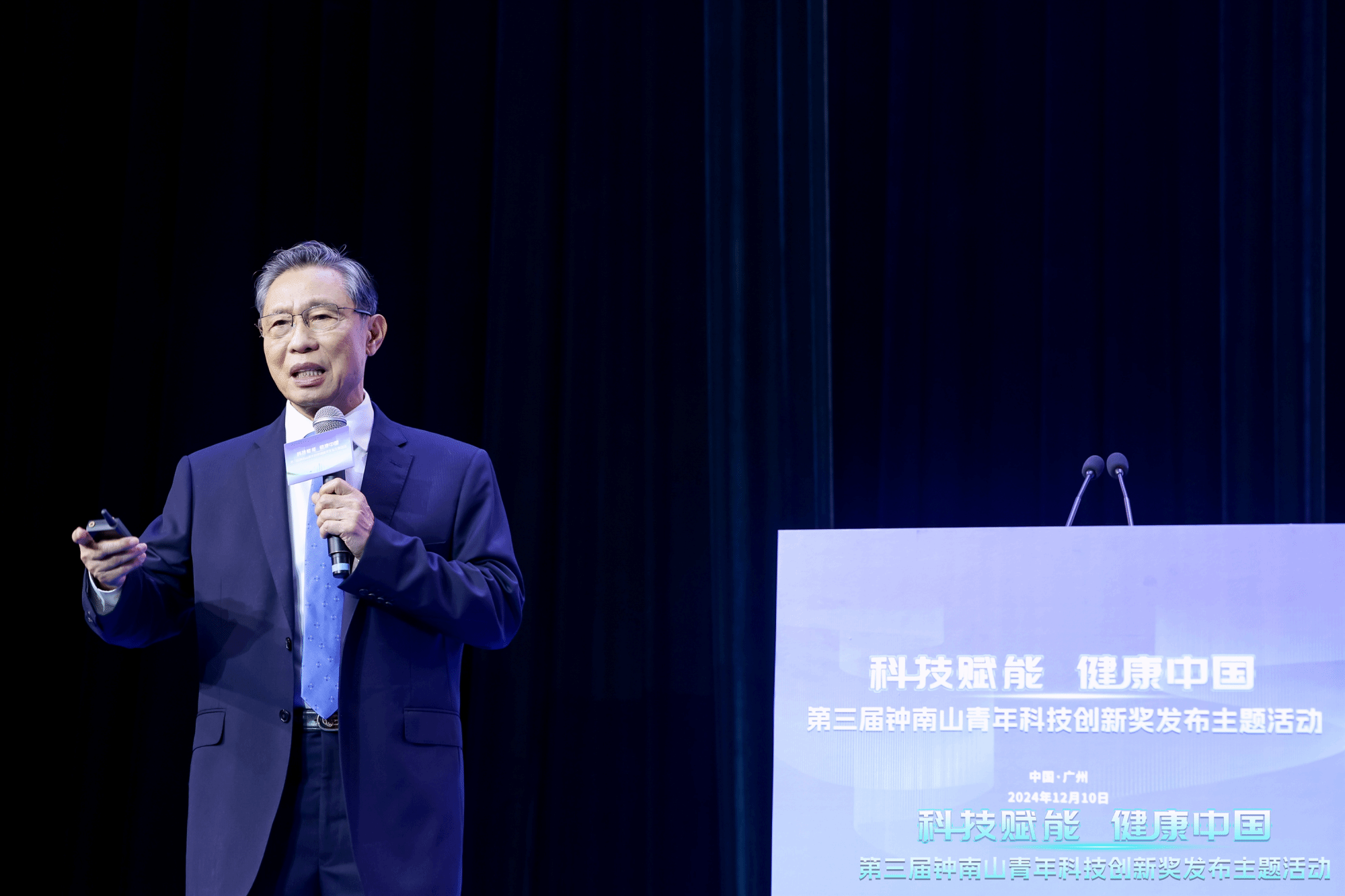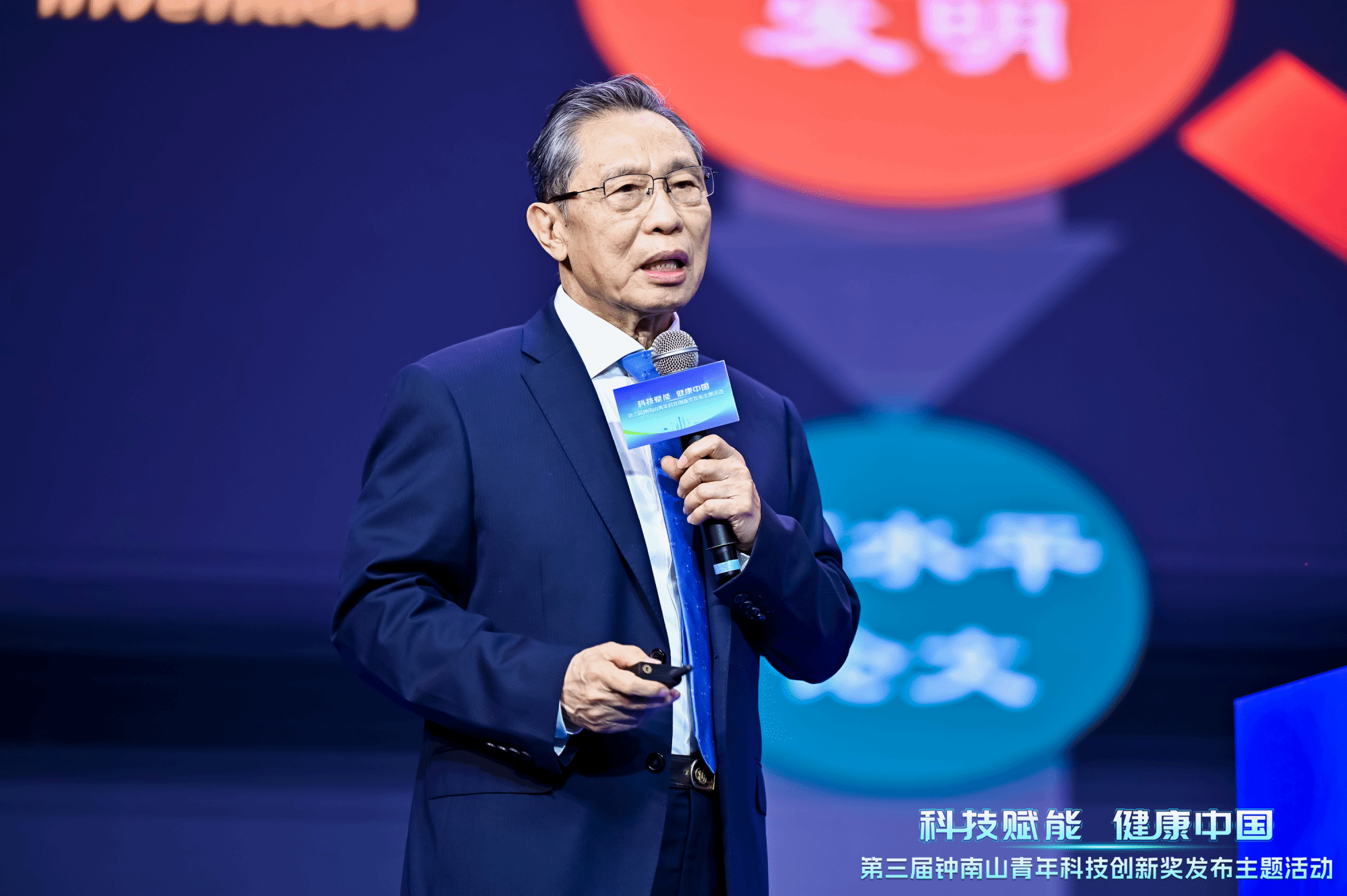 钟南山院士在第三届钟南山青年科技创新奖发布主题活动中讲述科技创新的理念