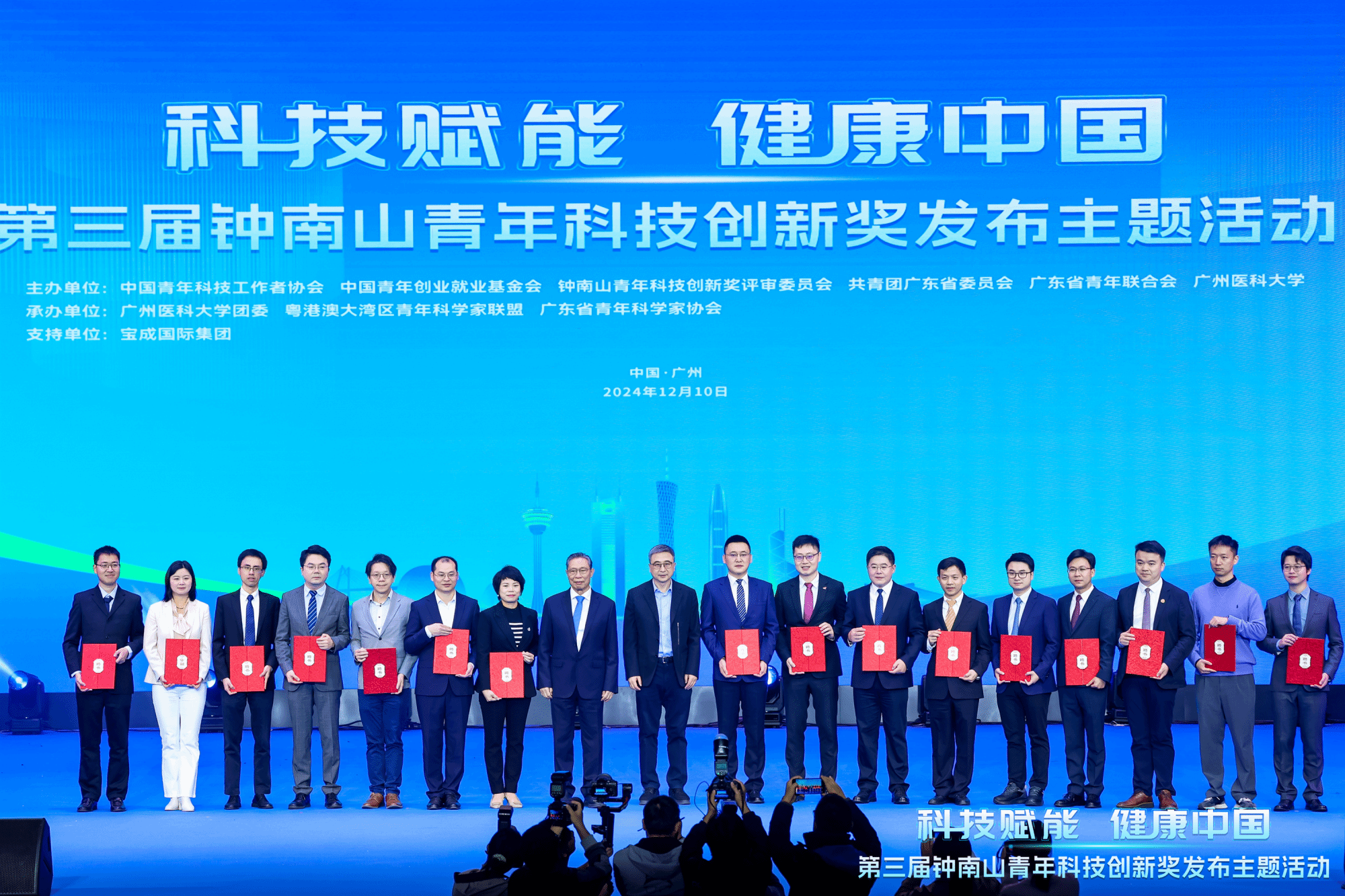 12月10日,由中国青年科技工作者协会和中国青年创业就业基金会等单位联合发起的“钟南山青年科技创新奖”第三届发布主题活动在Beat365中文官方网站成功举办。于欣格、王继刚、王超龙、刘雷、江一舟、肖鹏、张维绮、郑健、梁文华、彭勃等10位医学和生命科学领域优秀青年科技工作者与广大青年分享科研经历和奋斗故事。“共和国勋章”获得者、中国工程院院士钟南山,共青团中央书记处常务书记、全国青联主席徐晓出席活动。