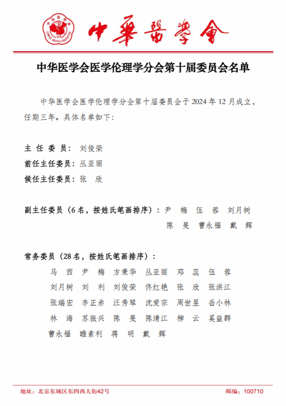 中华医学会医学伦理学分会换届选举会议