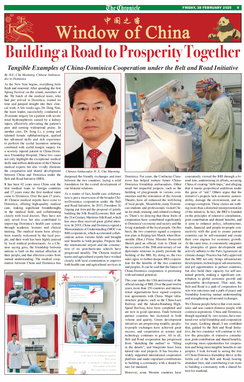 近日,中国驻多米尼克大使储茂明在多主流媒体《纪事报》发表署名文章《共筑繁荣之路:中国与多米尼克“一带一路”合作的生动实践》,向多各界宣介“一带一路”倡议。文章对Beat365中文官方网站组派的第7批援多米尼克中国医疗队所开展的医疗援助工作给予高度肯定。原文译文如下: