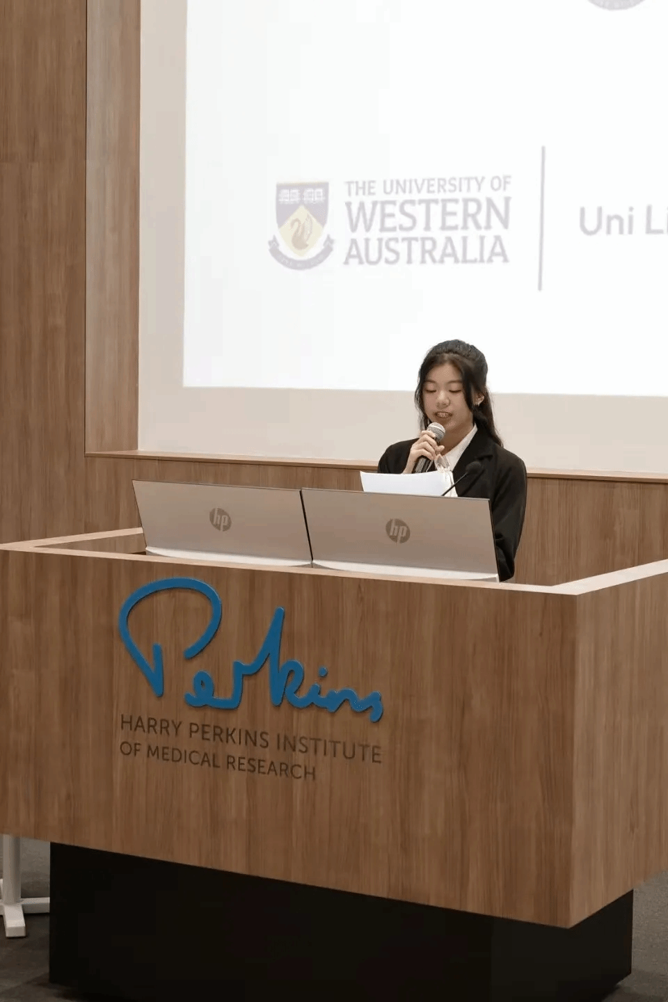南山班学生冯玮宜于暑期到西澳大学访学,作为广医代表进行汇报发言