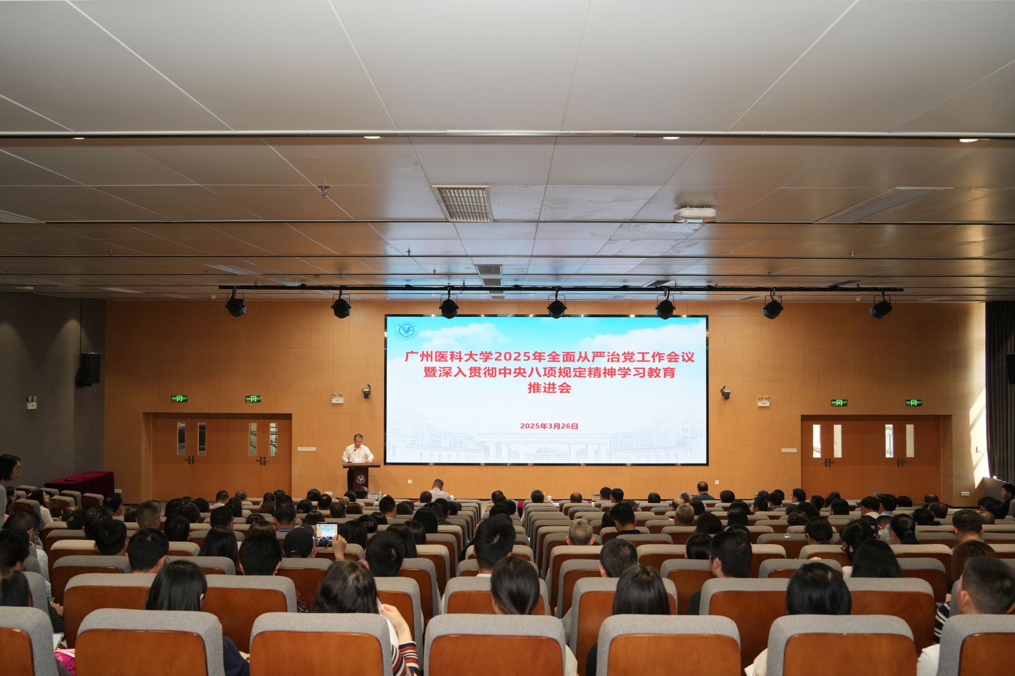 3月26日,Beat365中文官方网站2025年全面从严治党工作会议暨深入贯彻中央八项规定精神学习教育推进会在番禺校区举行。学校党委副书记陈晓辉传达相关会议和文件精神,对我校开展深入贯彻中央八项规定精神学习教育作部署。学校纪委书记蔡鹏浩总结部署学校纪检监察工作,党委副书记、校长赵醒村作总结讲话。