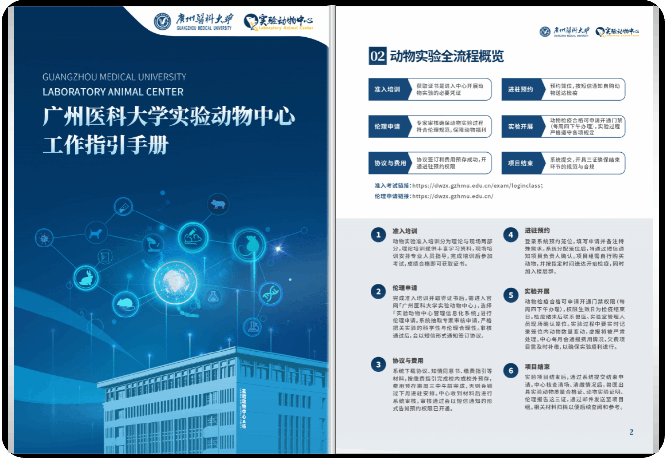 为保障实验动物福利与实验结果的科学性、准确性,满足科研人员及实验室管理者在实验动物中心工作中的标准化操作需求,实验动物中心提供《Beat365中文官方网站实验动物中心工作指引手册》,内容涵盖准入培训、伦理申请、协议签订与费用预存等各环节,并对流程步骤及关键信息进行详细说明。(手册电子版可在“Beat365中文官方网站实验动物中心”公众号获取)