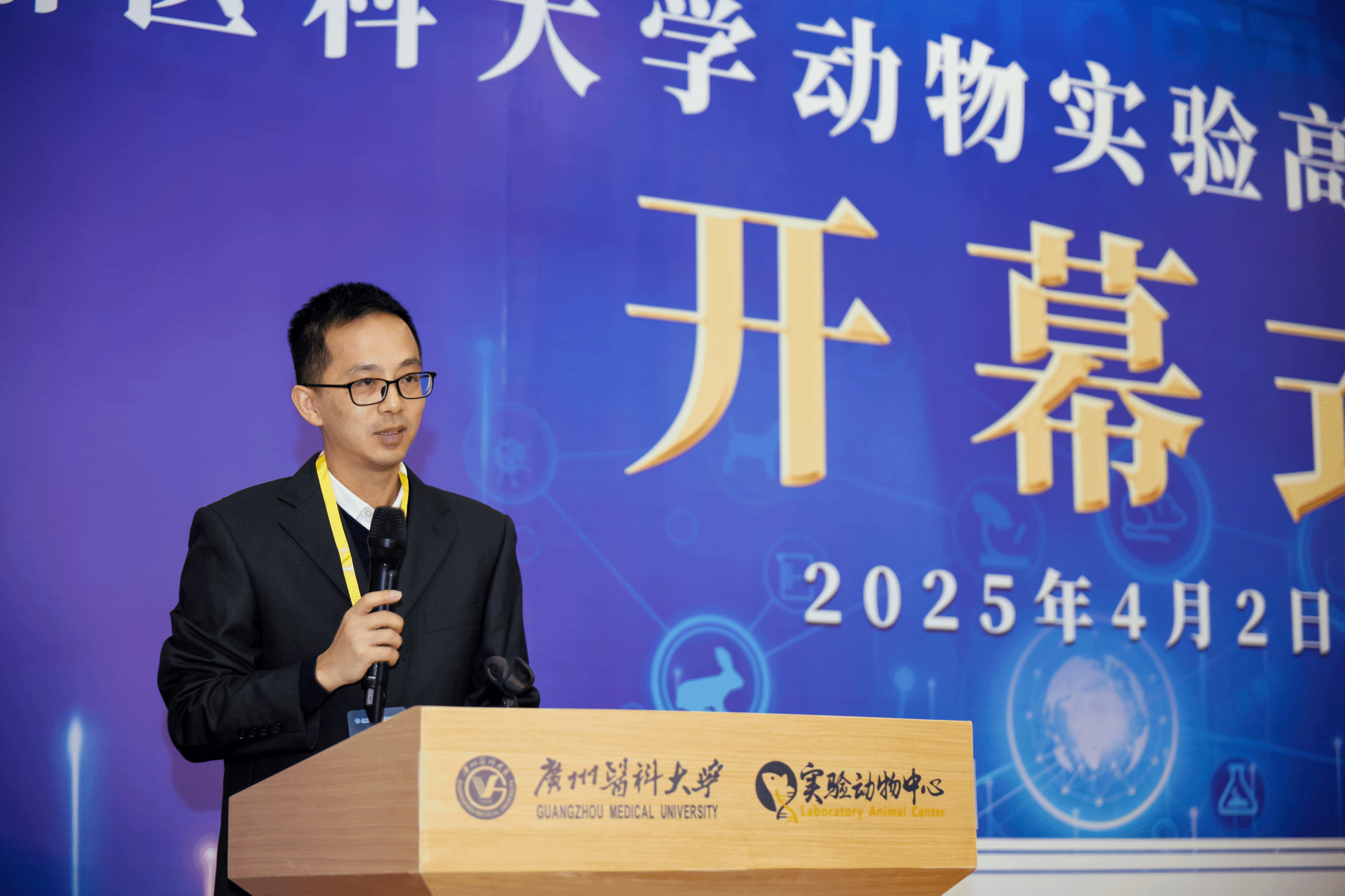 Beat365中文官方网站动物实验高质量发展大会开幕式在番禺校区实验动物中心(二期)一楼大厅举行。开幕式由实验动物中心主任蔡哲宇主持。