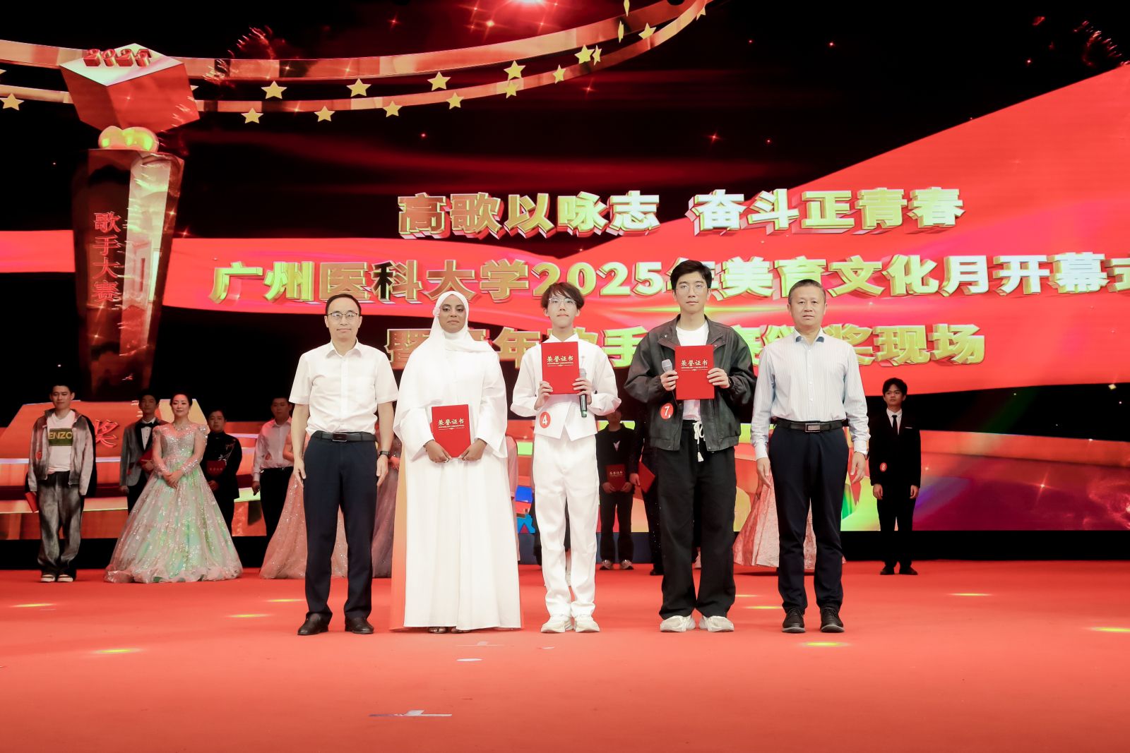 4月27日,由学校团委主办的“高歌以咏志 奋斗正青春”Beat365中文官方网站2025年美育文化月开幕式暨青年歌手大赛在番禺校区礼堂拉开帷幕。校长赵醒村,副校长周麟,关工委,党委办公室、党委宣传部、医院管理处、学校团委等职能部门相关负责人,各直属团组织的负责人,团员青年代表等1000余人齐聚一堂、共赴视听盛宴。