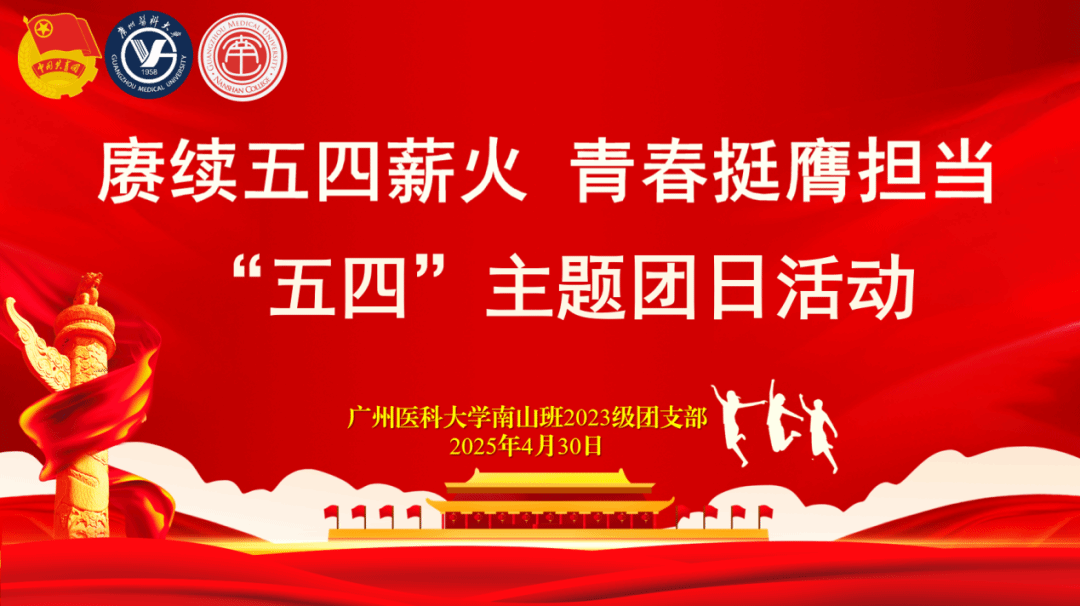 弘扬五四精神,勇担时代使命。学校团委开展“赓续五四薪火,青春挺膺担当”五四青年节主题团日活动,引领我校团员青年坚定听党话、跟党走,增强历史责任感与使命感。共青团广东省委副书记范春,学校部部长朱瑞峰、副部长蒋文涵、学校团委书记吴欣遥参加临床医学南山班2023级团支部五四主题团日活动,活动由第一临床学院团委副书记梁伟堂主持。