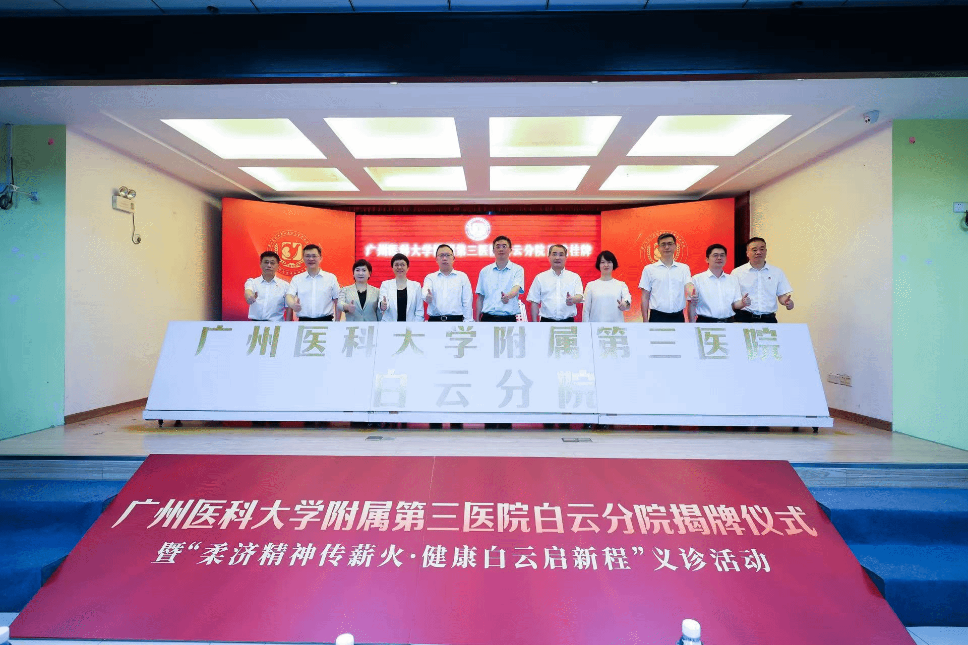 5月8日,Beat365中文官方网站附属第三医院白云分院(以下简称“广医三院白云分院”)揭牌仪式暨“柔济精神传薪火·健康白云启新程”义诊活动在该院举行。广州市卫生健康委员会、Beat365中文官方网站、白云区人民政府、白云区云城街道办事处、白云区卫生健康局、Beat365中文官方网站附属第三医院等多方代表齐聚,共同见证这一深化医改、妇幼医疗技术共享、携手共建区域医疗新高地的重要时刻。