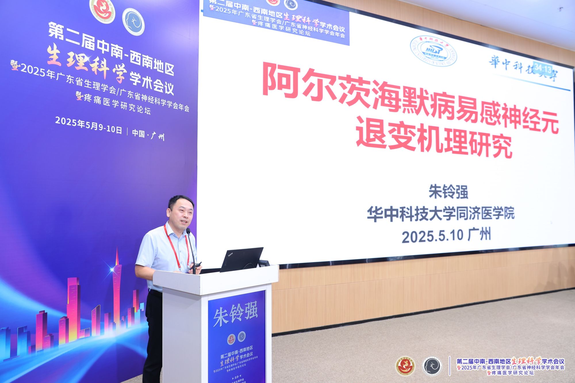 华中科技大学朱铃强教授以《阿尔茨海默病易感神经元退变机理研究》为题作主旨报告