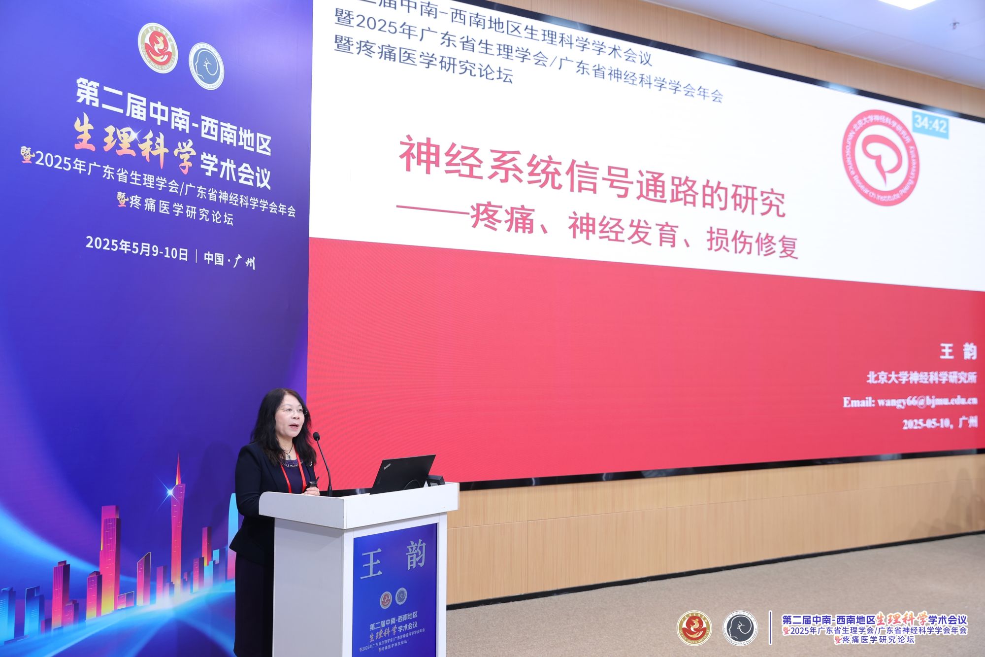 北京大学王韵教授以《神经系统信号通路的研究——疼痛、神经发育、损伤修复》为题作主旨报告