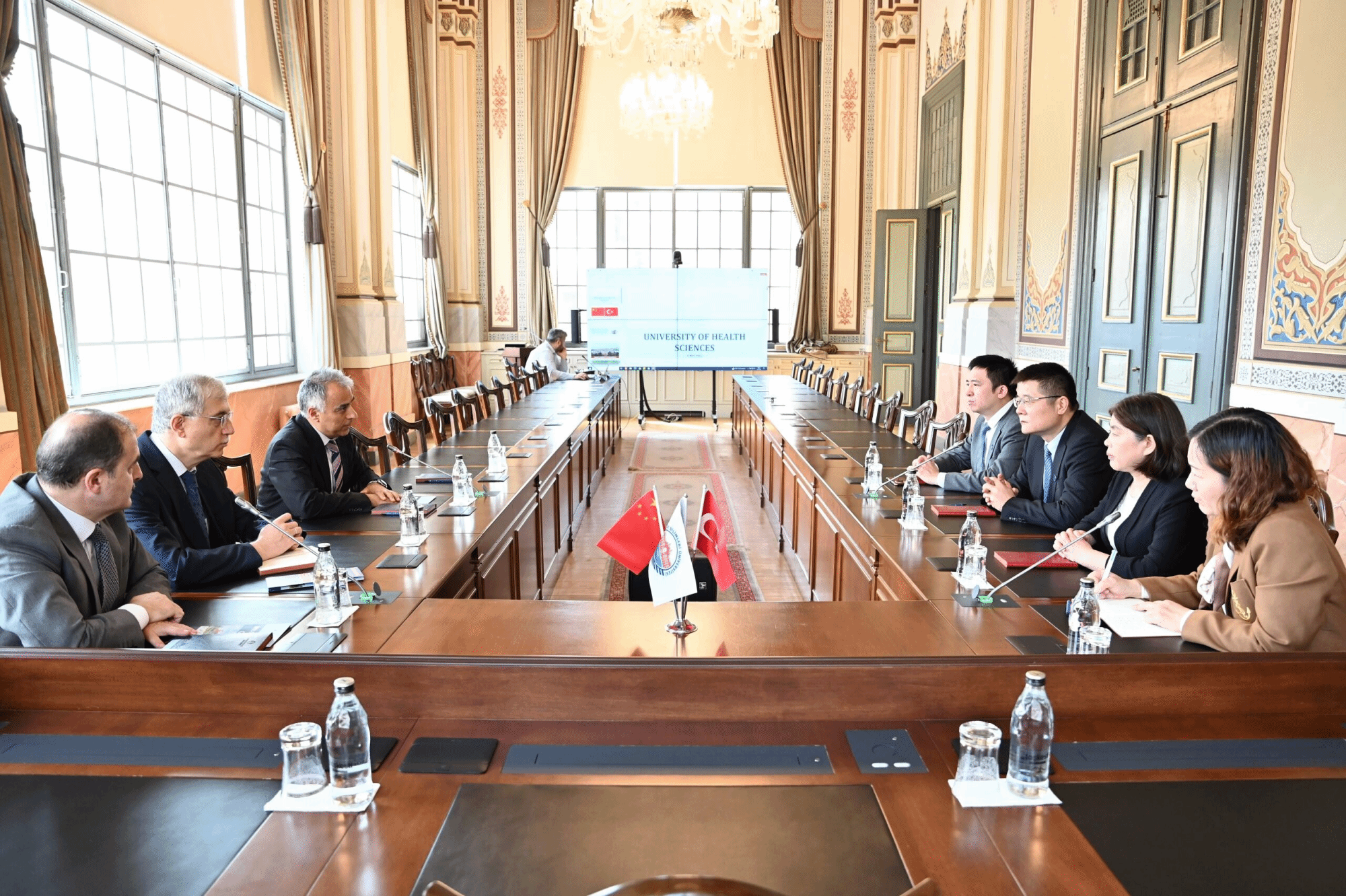 赵醒村校长一行应邀访问土耳其健康科学大学,并就培训中心的合作签订战略协议。随后,我校代表团与该校副校长Yunnus Karakoc、医学院及相关部门负责人进行友好合作洽谈。双方达成一致共识,将在师生交换见习、科研合作等方面进行合作。