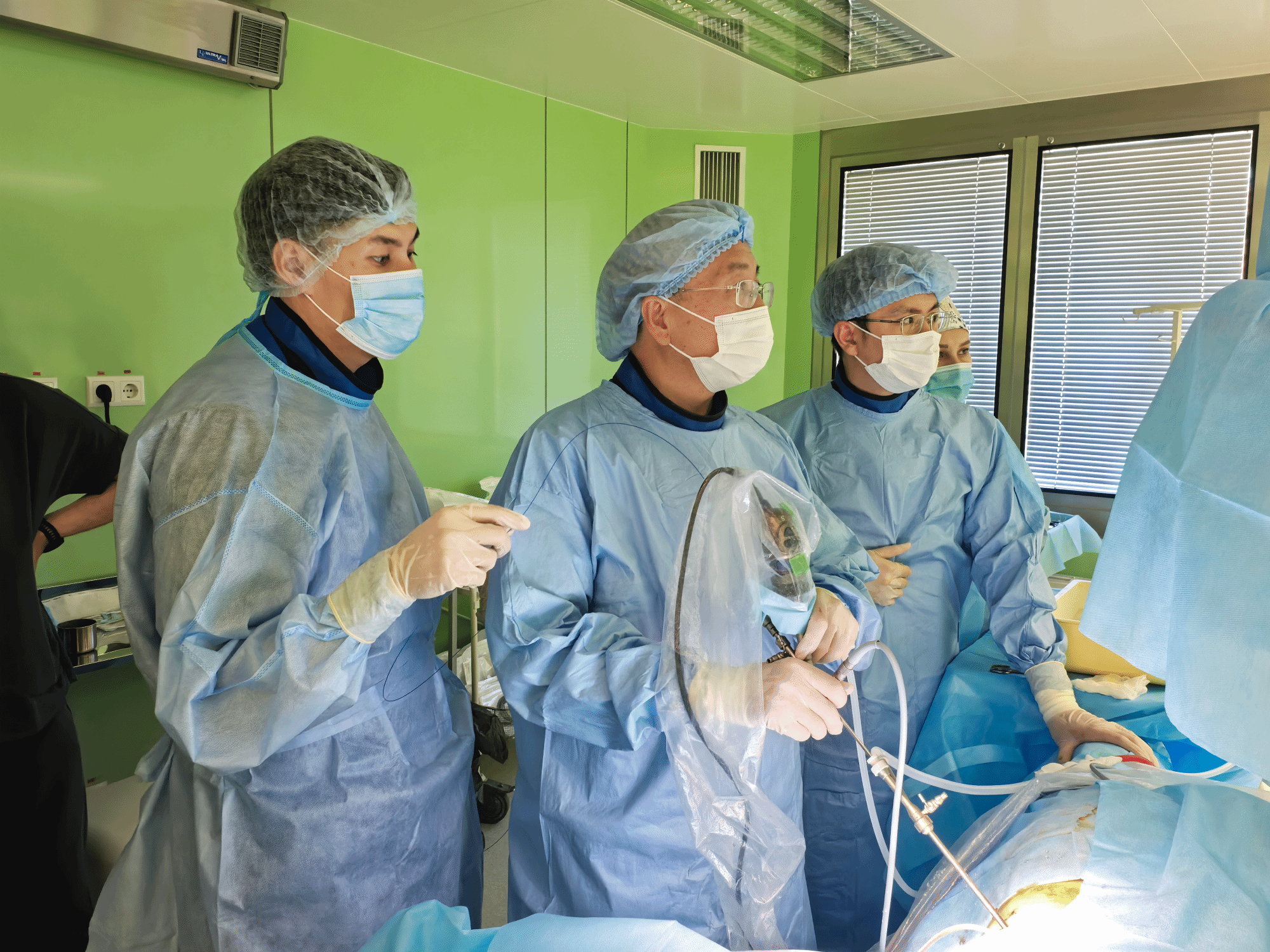 揭牌当日,由国际尿石症联盟主席、我校曾国华教授领衔的专家团队,启动首期“泌尿外科微创技术国际标准化培训”。通过“三维建模手术预演+模拟人操作培训+现场直播示范手术”的创新教学模式,为来自哈萨克斯坦全国各地的32名泌尿外科骨干医师提供系统培训。