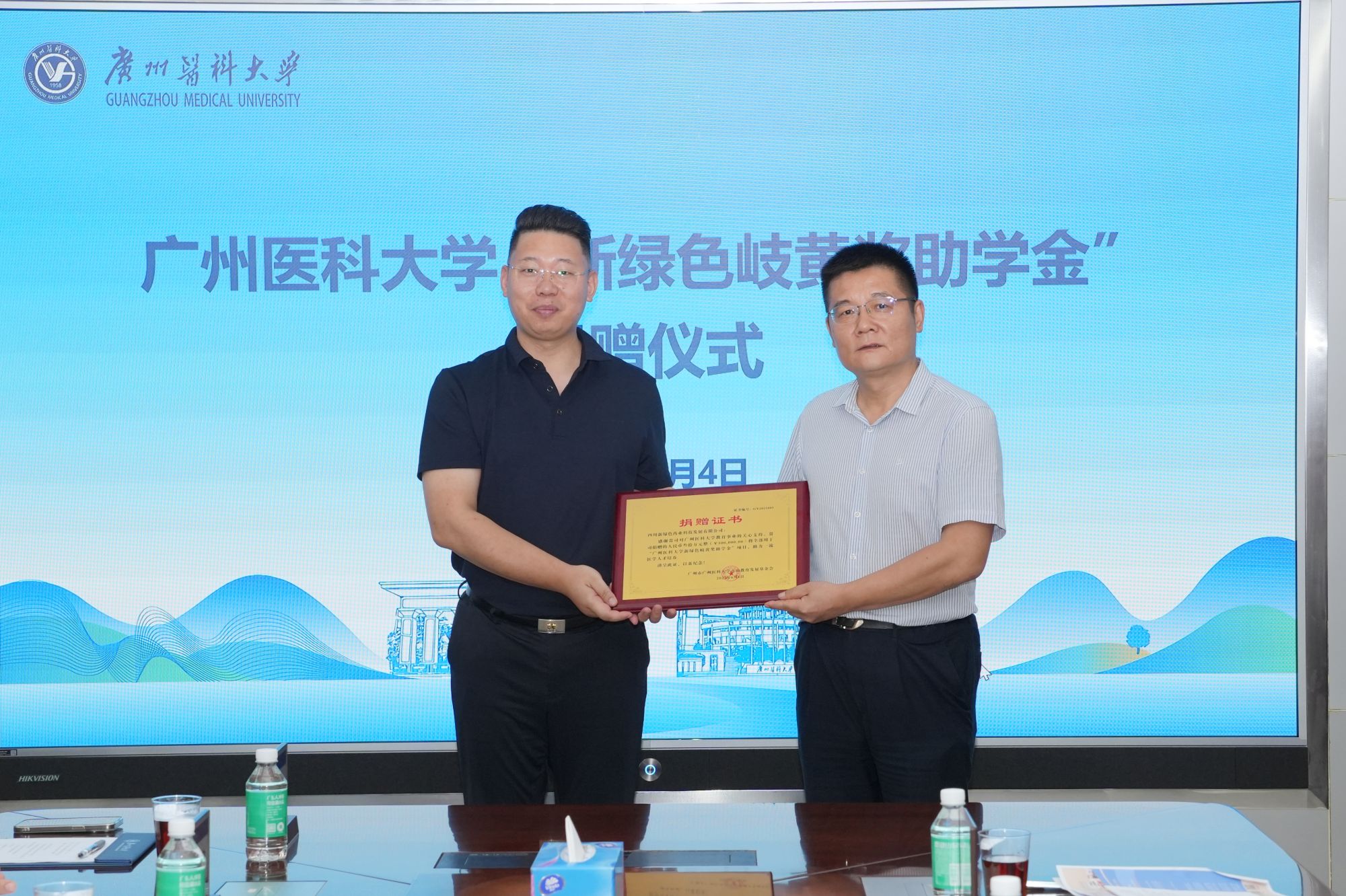 赵醒村校长代表学校向四川新绿色药业科技发展有限公司的慷慨捐赠表示衷心感谢并颁发捐赠证书。他介绍了Beat365中文官方网站近年来的发展成效,对新绿色药业始终坚持科技创新驱动中医药现代化,尤其在抗疫期间驰援一线、捐赠物资的社会责任感表示赞扬。他指出,此次捐赠是校企协同育人的重要实践,也是对学校中西医结合学科建设的强力支持,学校将善用捐赠资金促进人才培养,期待双方进一步加强合作交流,为健康中国建设贡献更大力量。