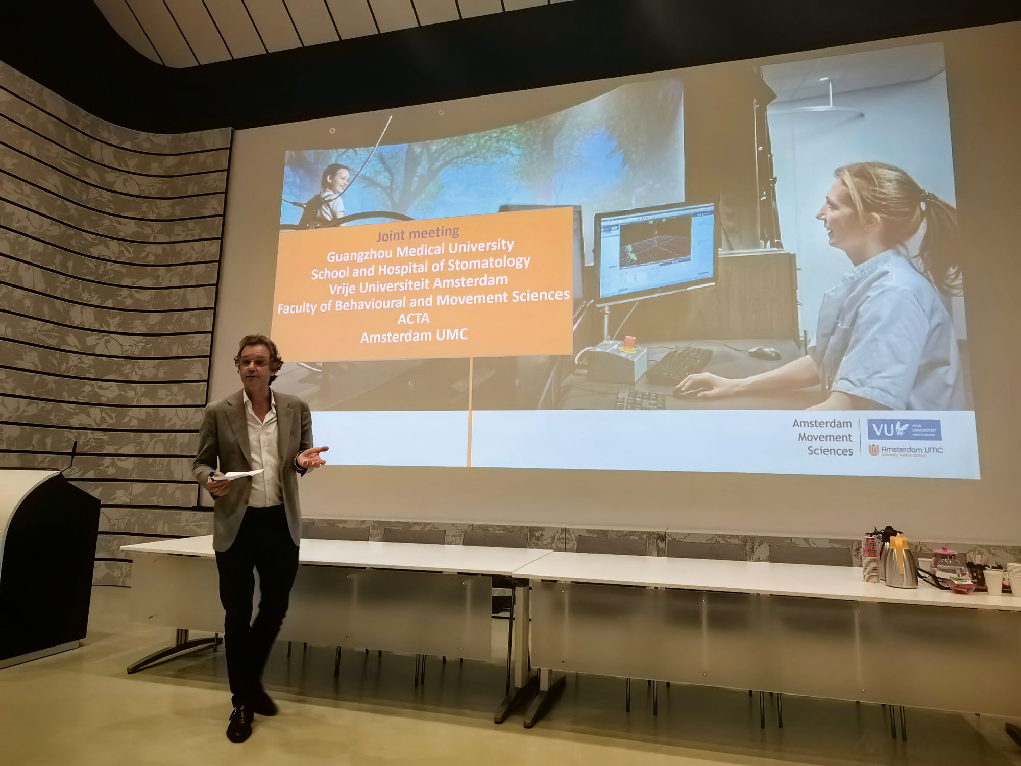 随后,双方联合举行主题为“口腔医学新进展”的研讨会,阿姆斯特丹牙科学术中心科研科主任Cees Kleverlaan教授和我校口腔医学院院长李江教授分别介绍了两校口腔医学发展现状与趋势,参与中荷联合培养项目的广医科研团队进行了专题汇报,双方导师就合作进展及培养方案优化展开热烈讨论,约40名荷方专家参与研讨。