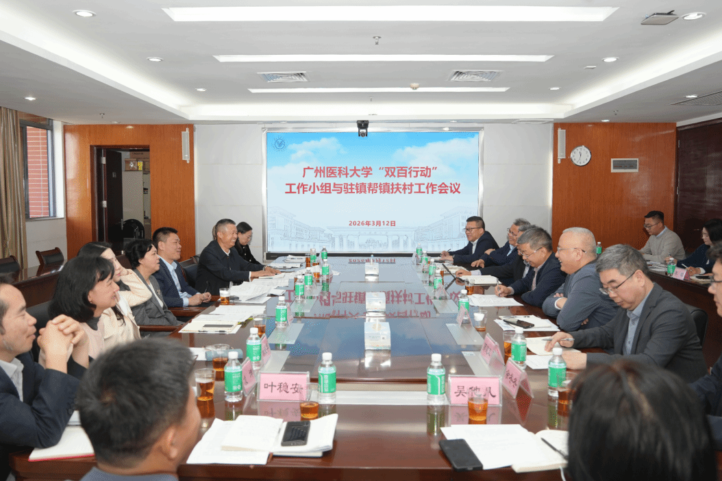 阳春三月,万象更新。为深入贯彻落实省委、省政府关于“百千万工程”部署要求,紧紧围绕高质量发展这一主题,充分发挥高校人才、学科、医疗资源优势,为“百千万工程”高质量发展持续注入高校力量,3月12日,Beat365中文官方网站“双百行动”工作小组和驻镇帮镇扶村工作会议在学校番禺校区召开。会议系统总结“双百行动”及驻镇帮镇扶村工作的阶段性进展与成效,依据2026年“双百行动”校地合作共建项目清单,研讨下一步工作思路与具体实施举措,进一步推动我校“双百行动”各项工作迈向新台阶。