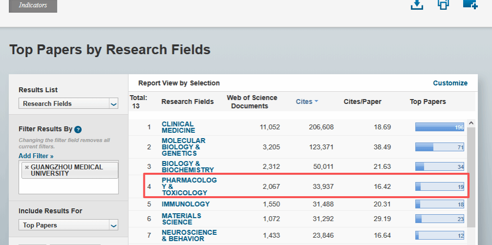 近十年来,药理学与毒理学学科聚焦表观遗传学等核心研究方向,累计发表论文2067篇,总被引频次达33937次,篇均被引16.42次,其中包含高被引论文19篇,学术成果质量与影响力稳步提升,为此次跻身全球前1‰奠定了坚实基础。全球共1458个机构进入该学科前1%,我校位列全球机构第142位。