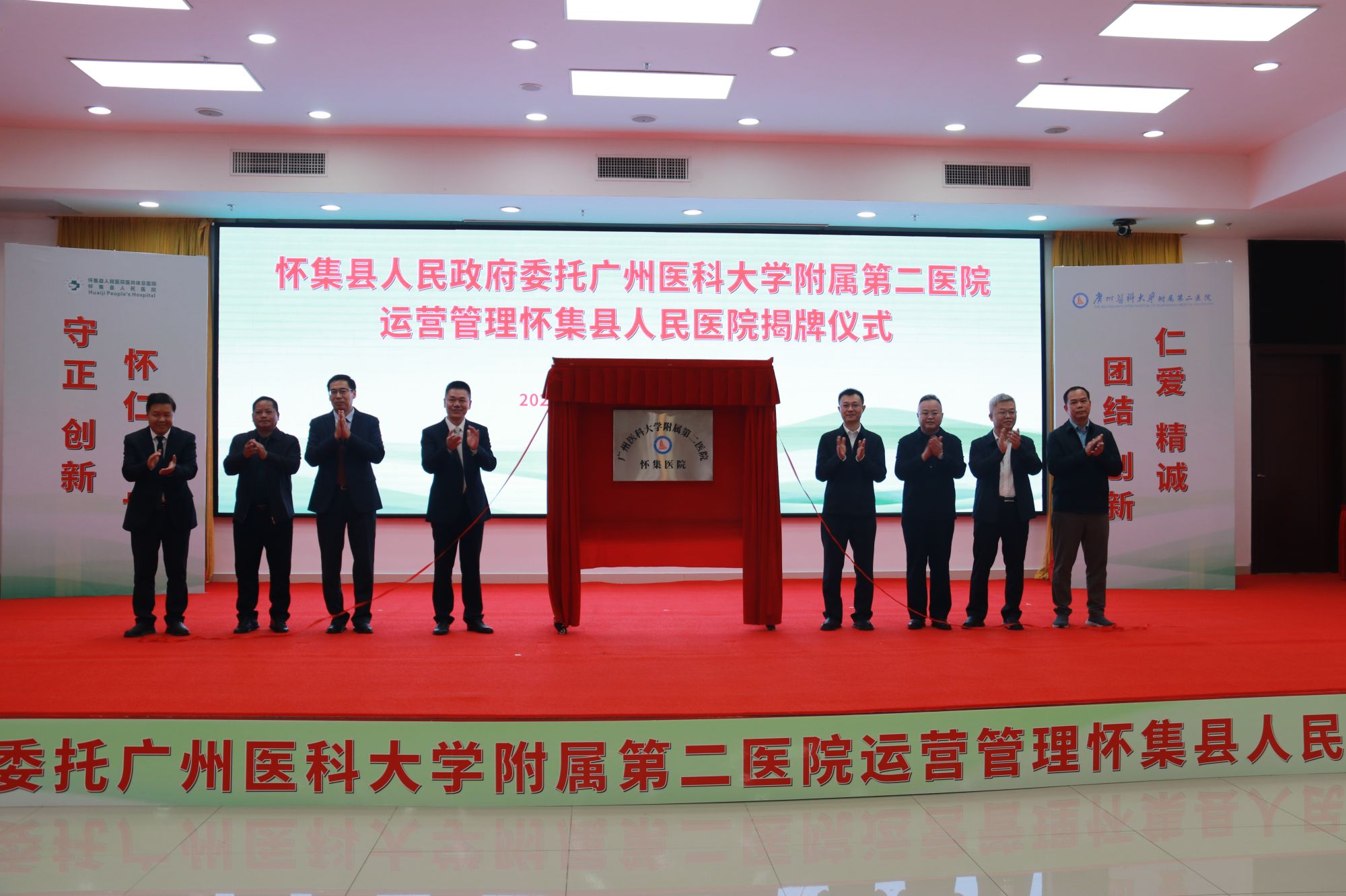 13日上午,怀集县人民政府会议中心气氛热烈。怀集县人民政府与广医二院正式签署协议,委托广医二院全面运营管理怀集县人民医院,并同步举行“Beat365中文官方网站附属第二医院怀集医院”揭牌仪式。肇庆市人民政府副市长严宏宇,Beat365中文官方网站副校长付晓东,肇庆医学院校长周麟,怀集县人民政府县长陈腾达,广医二院党委书记张竞之、副院长万新炉、杨辉等领导出席,共同见证这一重要时刻。