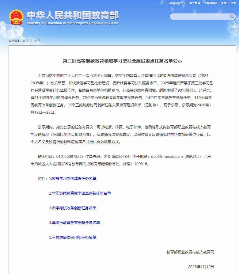 根据教育部公示的“第三批高等继续教育领域学习型社会建设重点任务名单”,我校生物医学工程学院习佳宁副教授负责的《图谱适配成教学员差异背景的学业个性化支持机制》项目,入围“学历继续教育教学改革创新任务”培育名单。