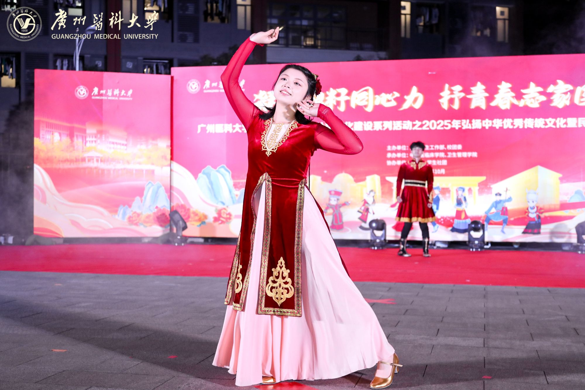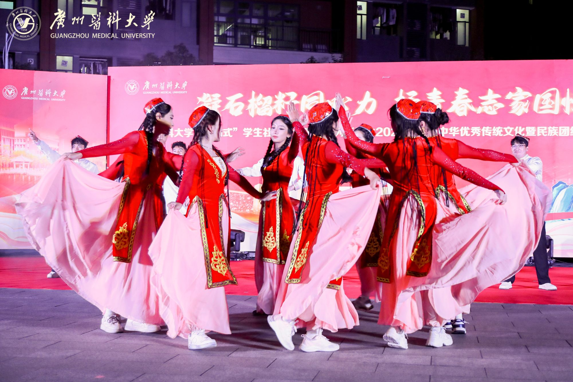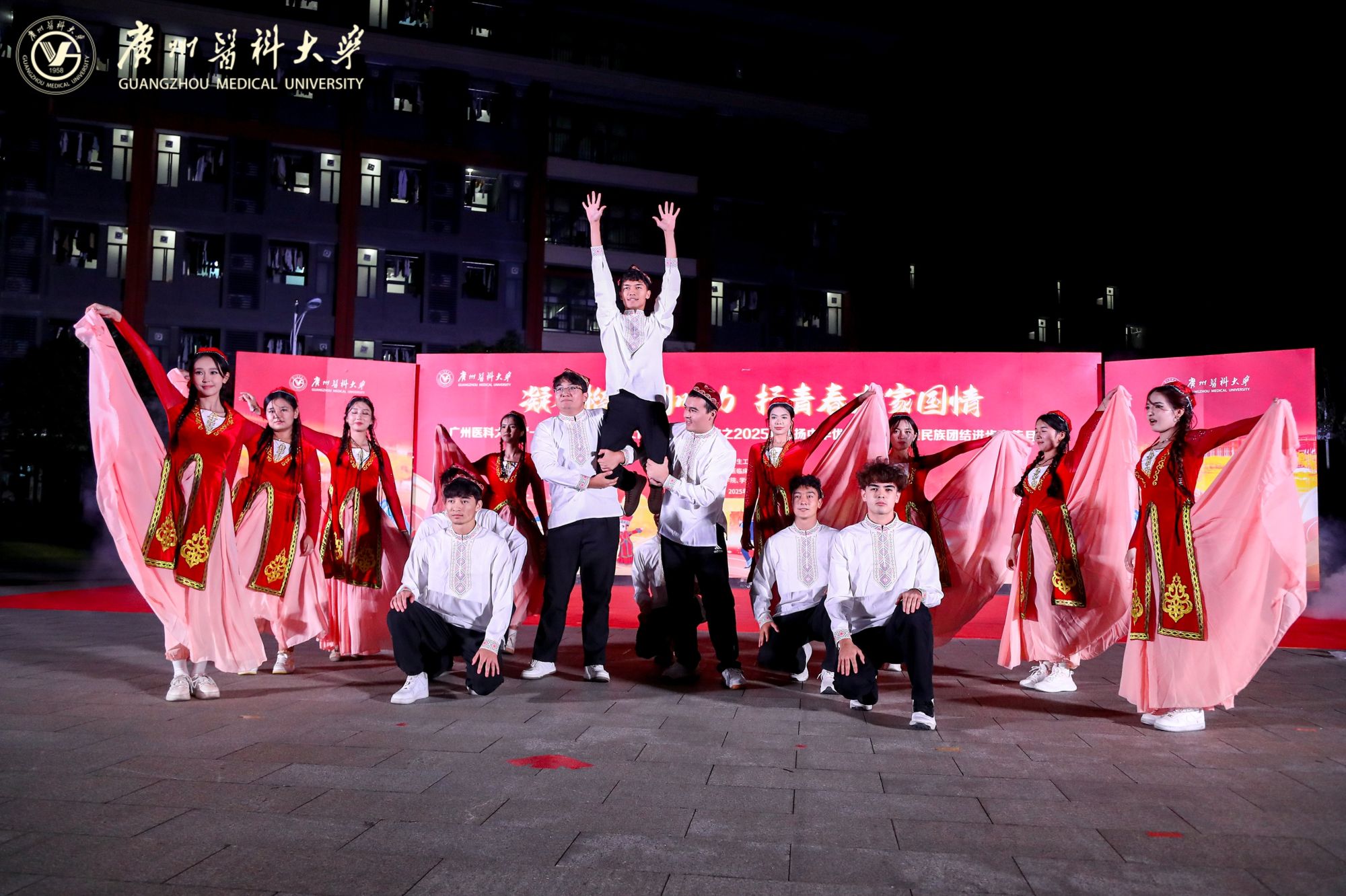 在主持人热情洋溢的开场白中,一场融合民族特色与青春活力的文艺汇演精彩上演,三个篇章层层递进,将活动氛围推向高潮。