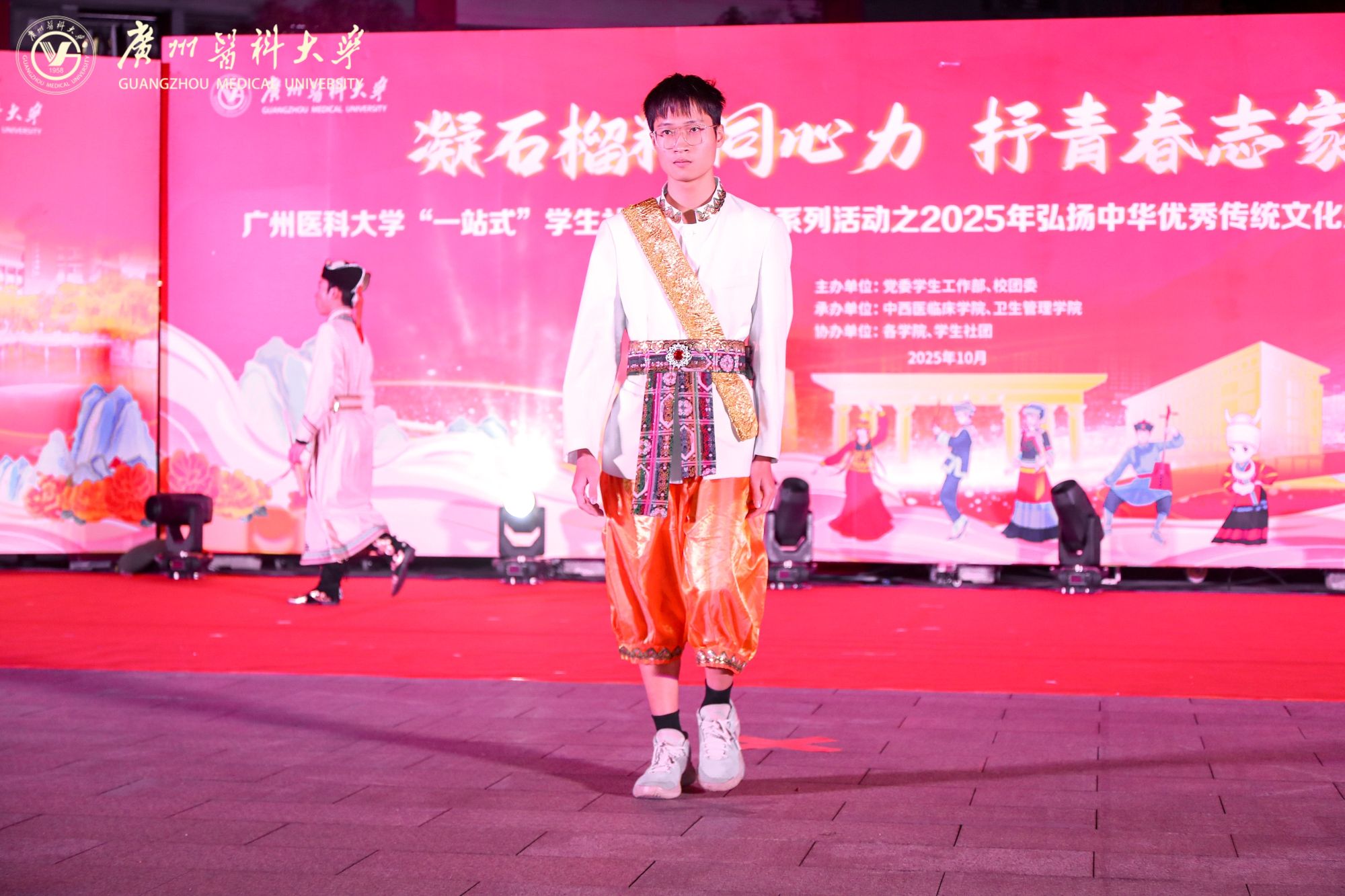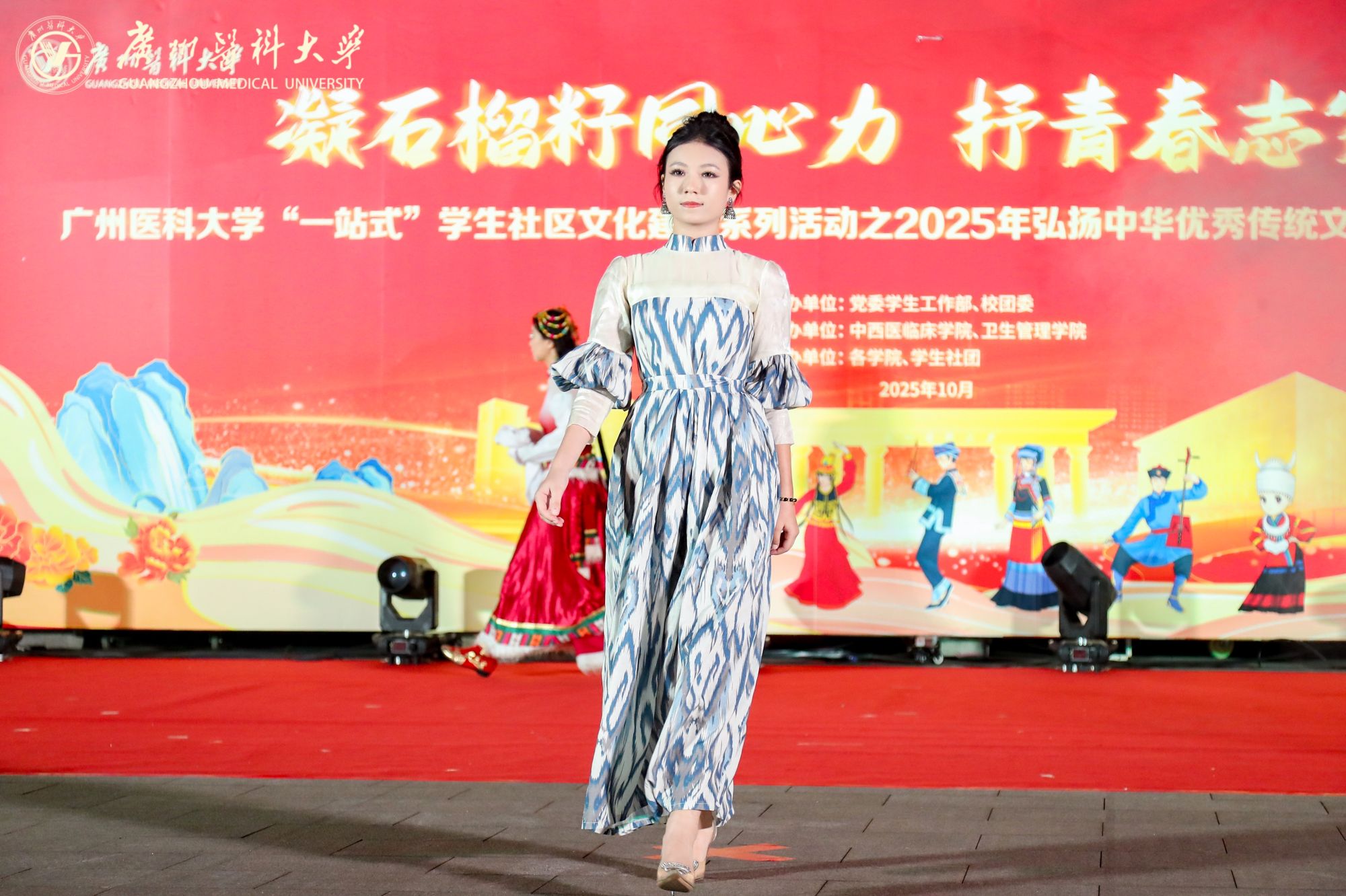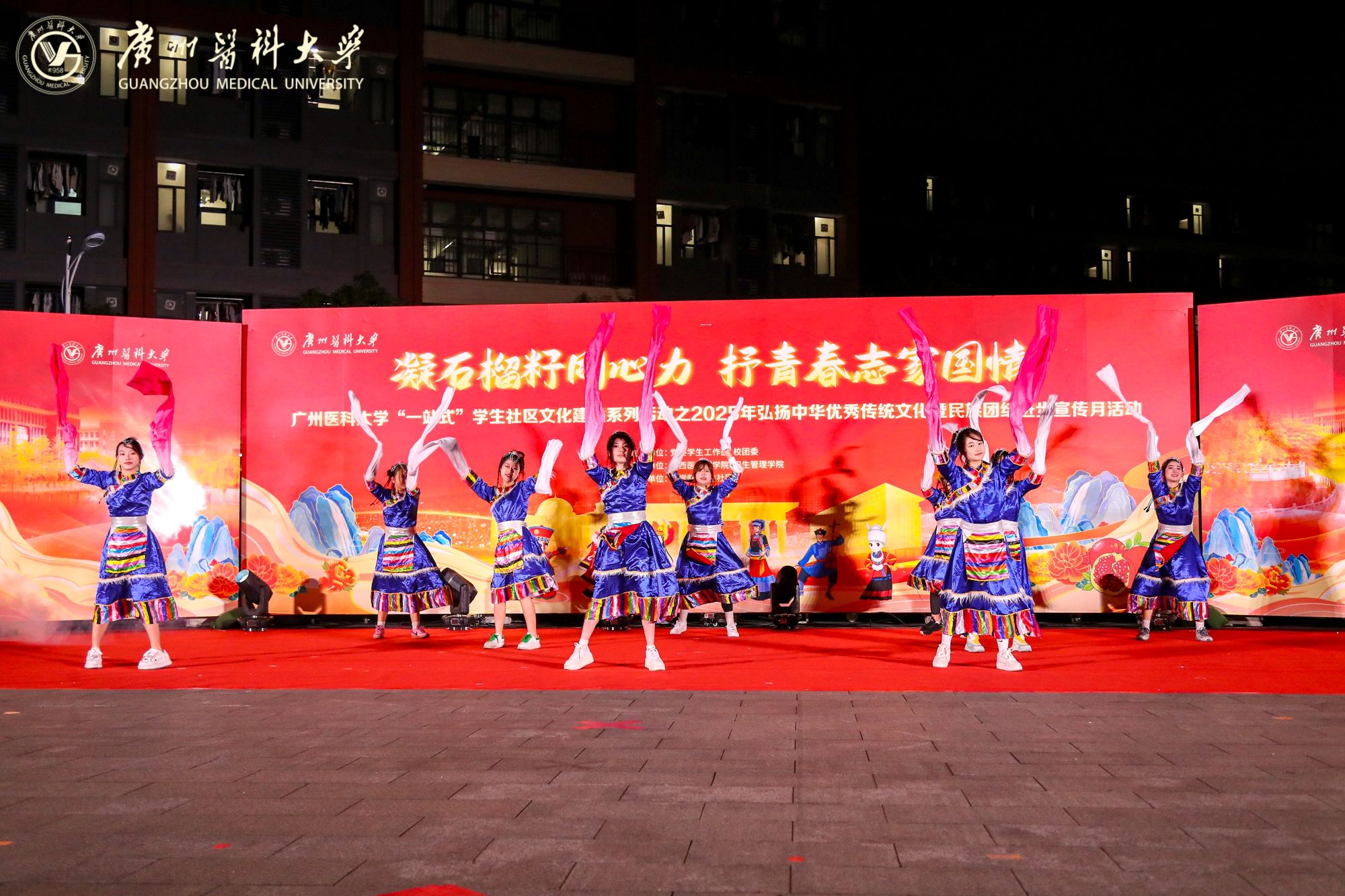 由学校党委学生工作部、校团委联合主办,中西医临床学院、卫生管理学院承办的“一站式”学生社区文化建设系列活动之2025年弘扬中华优秀传统文化暨民族团结进步宣传月活动在番禺校区青春广场拉开帷幕。