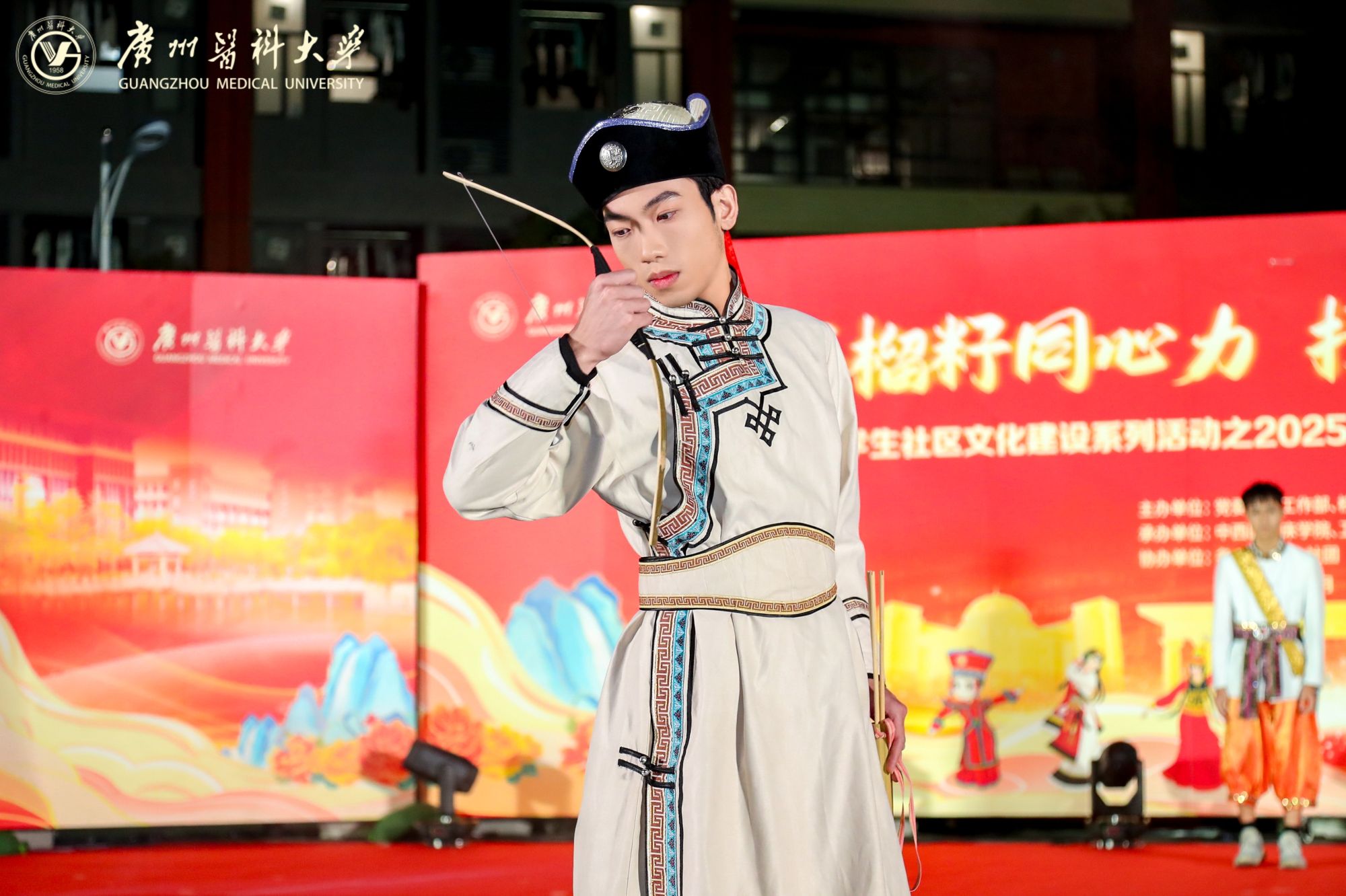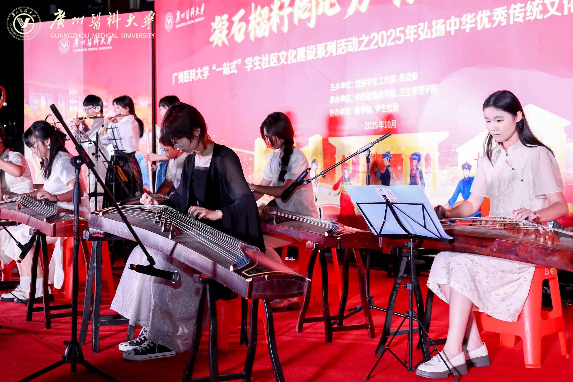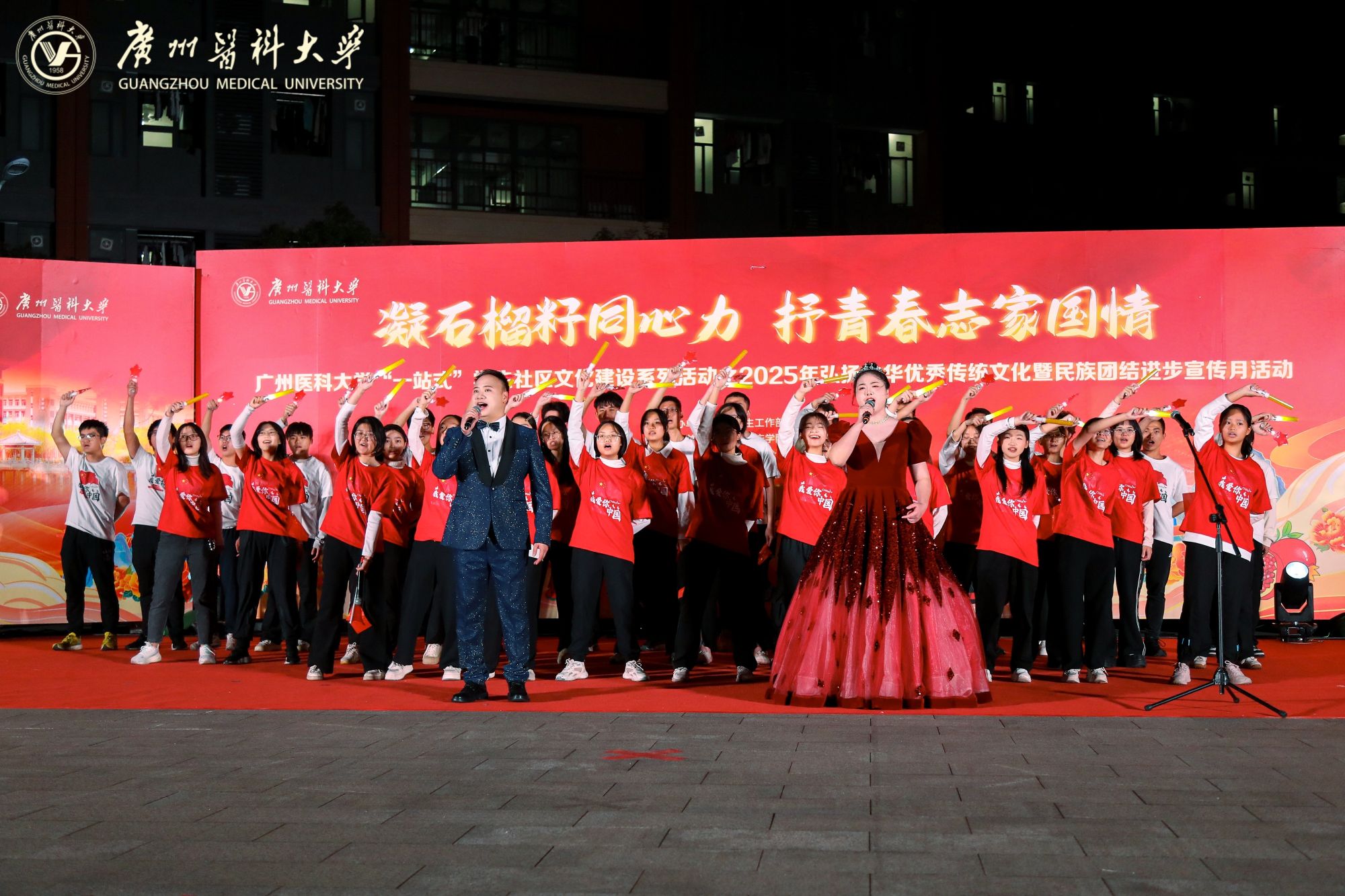 由学校党委学生工作部、校团委联合主办,中西医临床学院、卫生管理学院承办的“一站式”学生社区文化建设系列活动之2025年弘扬中华优秀传统文化暨民族团结进步宣传月活动在番禺校区青春广场拉开帷幕。