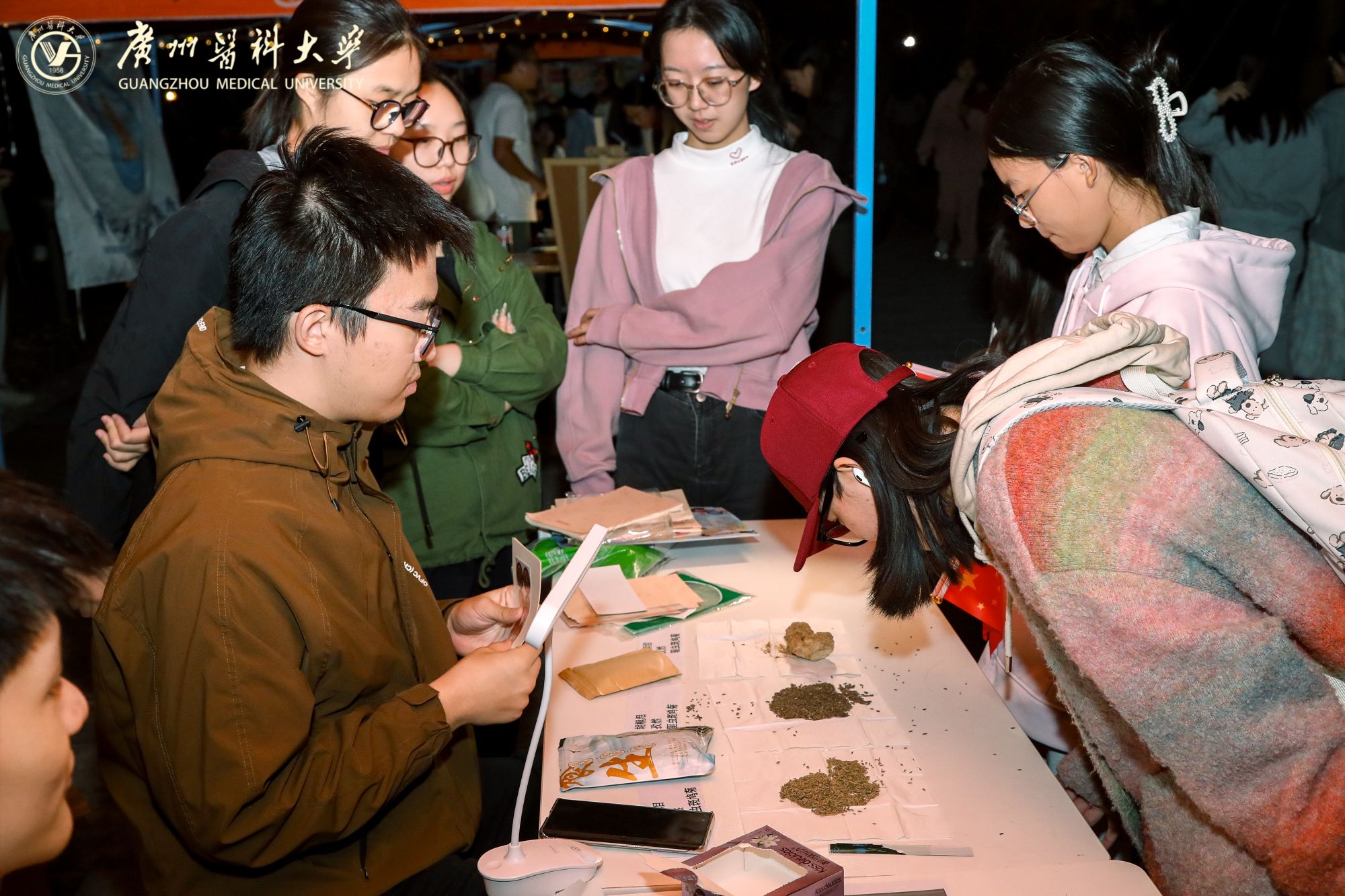 同学们排起长队,开启一场嗅觉与味觉的探险之旅。指尖划过装有百草的纸包,低头轻嗅,是柴胡的清香、艾叶的温厚;一杯杯温热祛湿的养生茶,在手中传递,暖意直达心间。