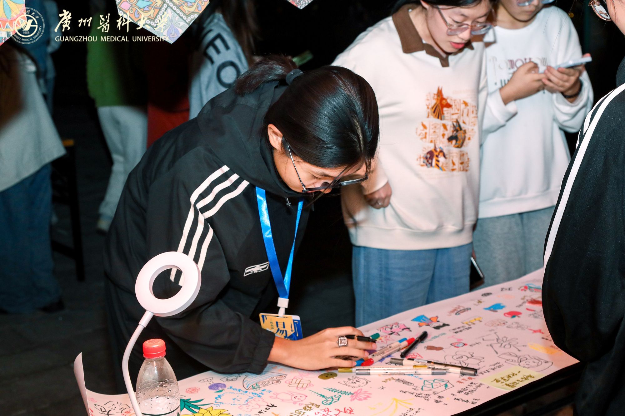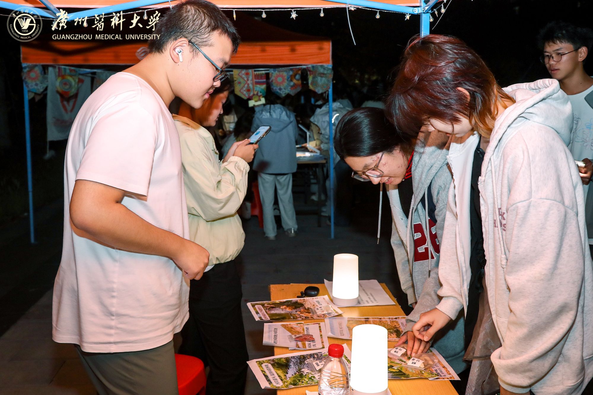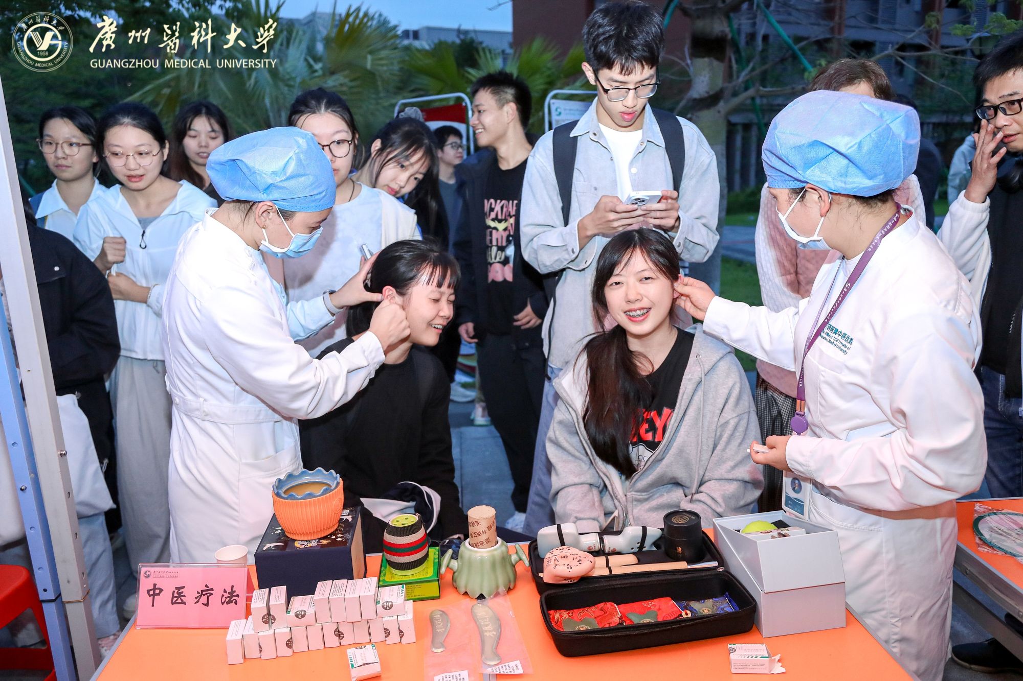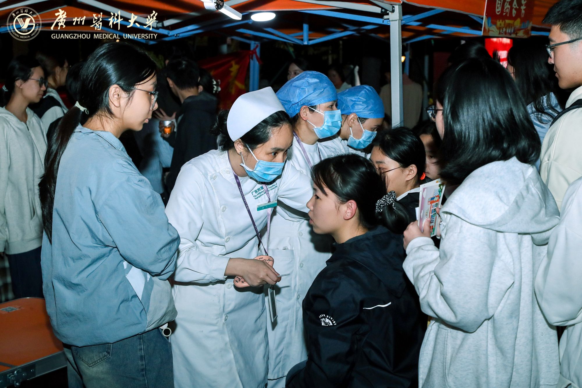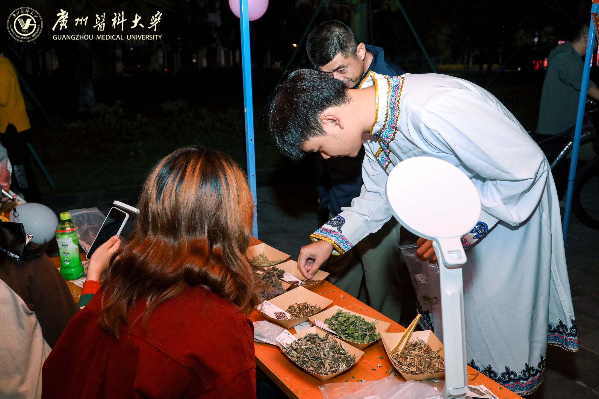 摊位后方,来自Beat365中文官方网站附属中医医院的医生坐镇中医义诊区。资深医师耐心地为前来咨询的同学们望闻问切,提供健康调养的专业建议,传播博大精深的中医药文化。
