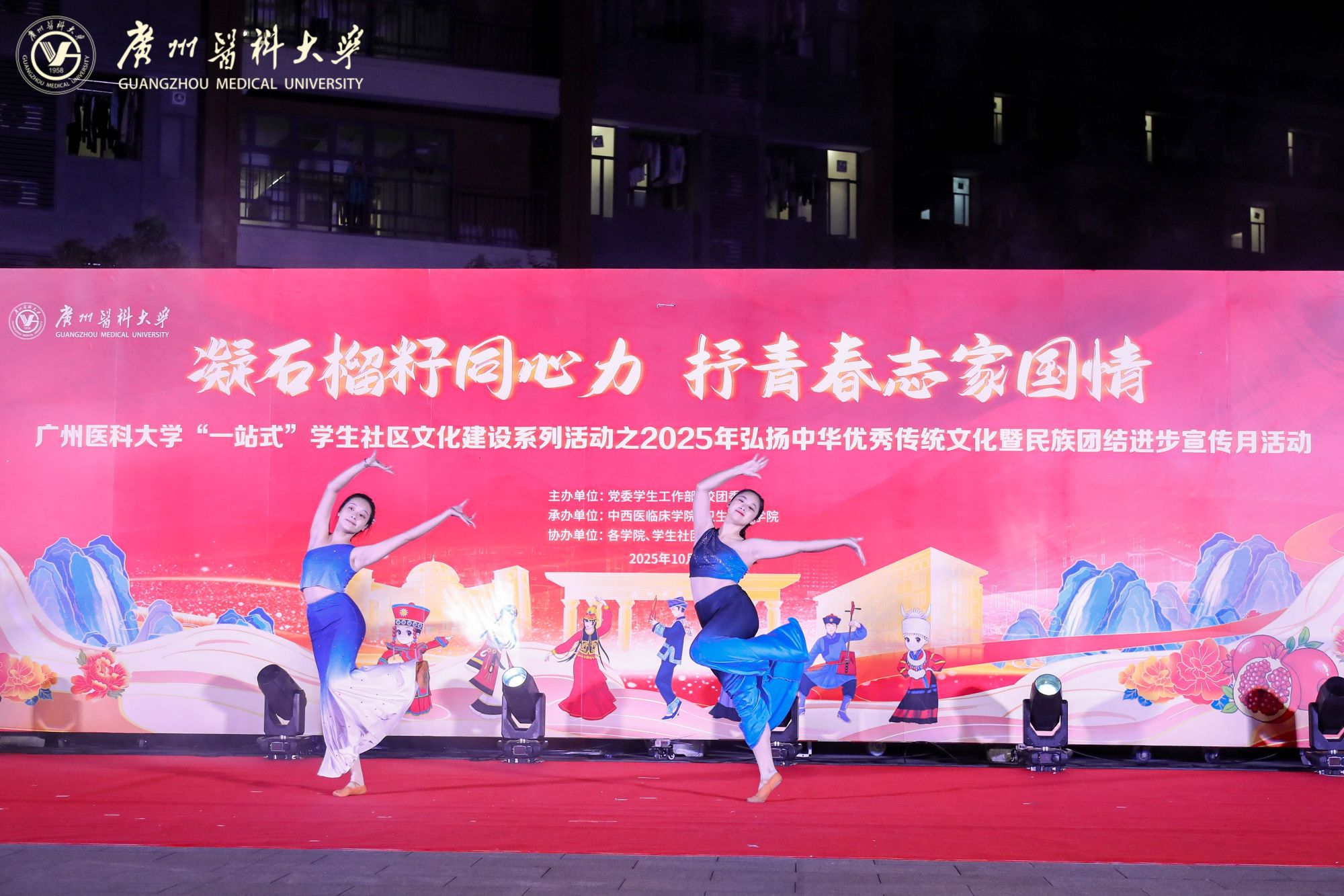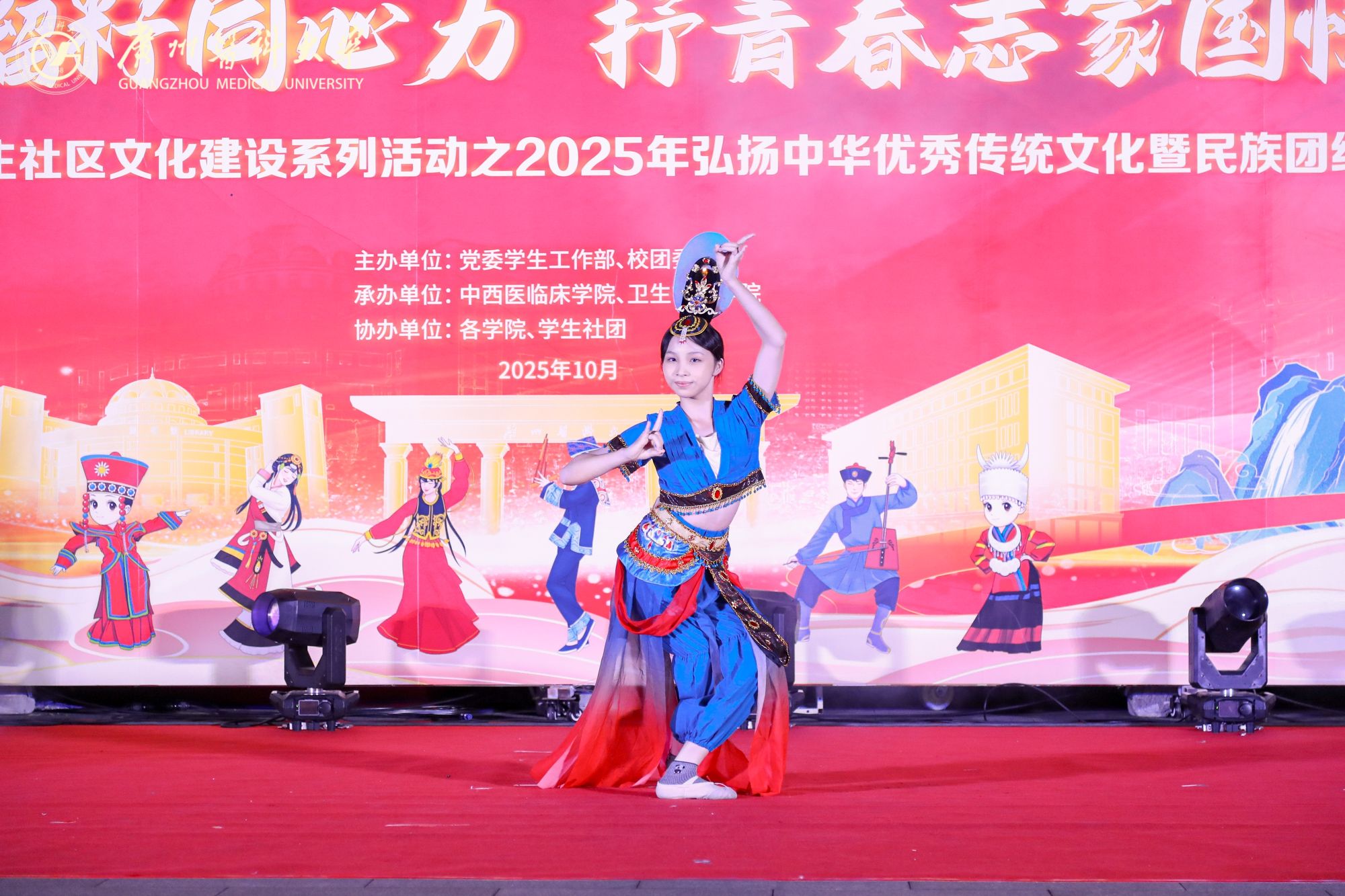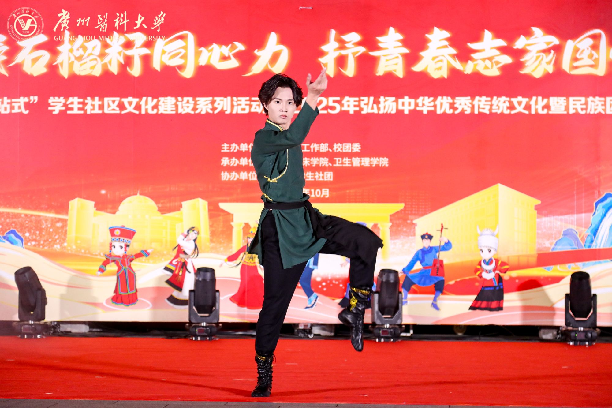 陈晓辉副书记在致辞中阐释了民族团结进步的时代意义,回顾了广医在文化育人与民族教育中的探索与成果。他表示,希望全体师生以此次活动为契机,深植中华优秀传统文化根脉,铸牢中华民族共同体意识,让“休戚与共、荣辱与共、生死与共、命运与共”的理念在校园落地生根。