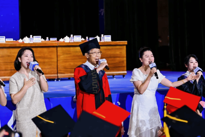 看到大家朝气蓬勃,让我想到65年前自己毕业的场景,心潮澎湃。高兴的同时,我看到也有同学对前途感到忧虑,我希望大家不要被眼前的困难打倒。