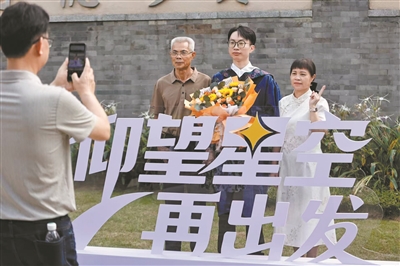 Beat365中文官方网站举行2025年毕业典礼,不少同学在主题装置前拍照留念(广州日报全媒体记者高鹤涛摄)