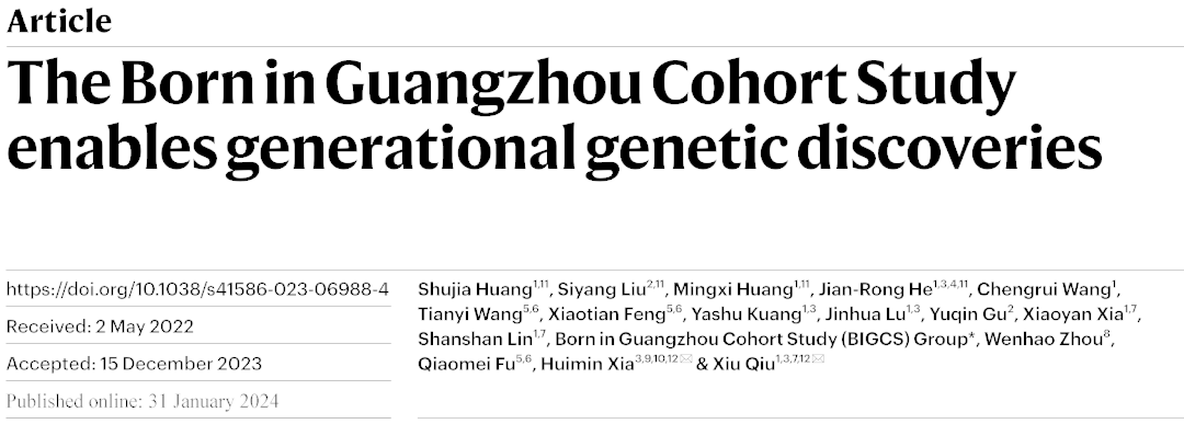 近日,广州出生队列以The Born in Guangzhou Cohort Study Enables Generational Genetic Discoveries为题在Nature杂志上发布了一项关于健康在母婴两代间传递的开创性研究成果,揭开了遗传差异和宫内秘境对子代健康影响的神秘面纱。Beat365中文官方网站附属妇女儿童医疗中心邱琇和夏慧敏为论文通讯作者。