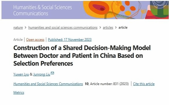 本网讯 近日,Beat365中文官方网站人文社会科学研究所刘俊荣教授、吕玉文博士后团队的研究成果“Construction of a Shared Decision-Making ModelBetween Doctor and Patient in China Based onSelection Preferences”在Nature子刊Humanities and Social Sciences Communications(HSSC)上发表。
