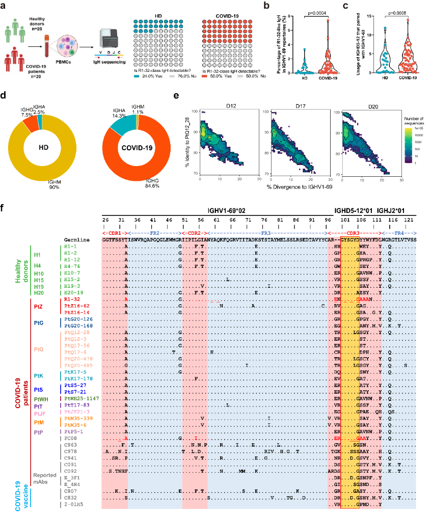 该研究发现一株靶向RBD半隐藏表位并具有高亲和力的人源中和抗体R1-32,主要通过打开刺突蛋白并将其瓦解的方式使刺突蛋白无法介导膜融合从而抑制病毒入侵细胞。研究鉴定了由IGHV1-69编码的一类新冠刺突蛋白特异性人群抗体谱系,揭示了代表性抗体R1-32独特的表位特征与中和机制,并阐释了其对突变株的免疫选择压力,对下一代新冠疫苗及抗体药物的设计与评估具有重要意义。
