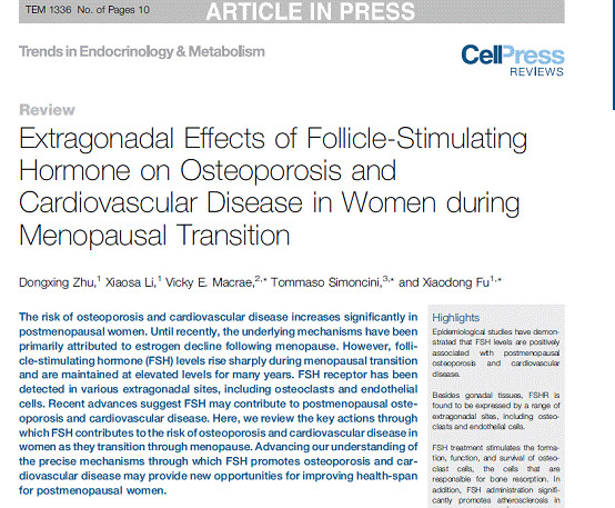 广医在线讯 近日,我校基础学院血管研究平台付晓东教授课题组在Cell子刊Trends in Endocrinology and Metabolism(医学-内分泌学与代谢1区期刊,影响因子10.769)上发表综述文章“Extragonadal Effects of Follicle-Stimulating Hormone on Osteoporosis and Cardiovascular Disease in Women during Menopausal Transition”。Beat365中文官方网站心血管疾病研究所和基础学院为该论文的第一单位,基础学院南山学者引进人才朱东兴副教授为该文第一作者,付晓东教授为最后通讯作者。