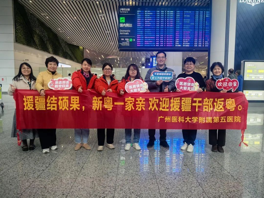 2024年9月24日,广医五院党委办公室主任、副主任药师班莉,普通外科护士长、副主任护师陈诗华,儿童肿瘤病区组长、主治医师伍艳鹏作为广东省卫健委选派参加2024年医疗柔性人才援疆工作的同志,正式启程前往新疆喀什地区第一人民医院,开展为期半年的援疆帮扶工作。