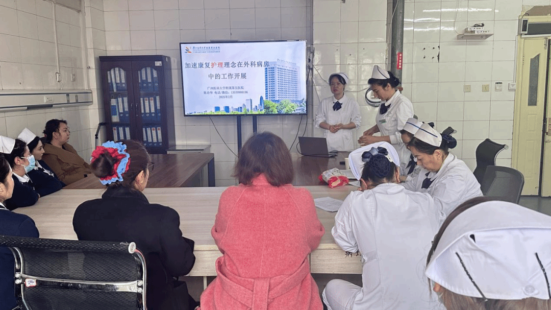 陈诗华副主任护师将广东先进护理经验与边疆实际深度融合,带领外科护理团队通过推广加速康复理念,推行早期下床地标标识、6分钟步行试验等量化管理等一系列措施,使患者术后下床活动时间平均提前6小时;创新管道二次固定法,大大降低了非计划性拔管率。