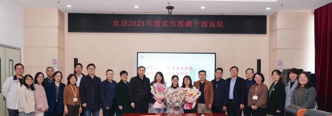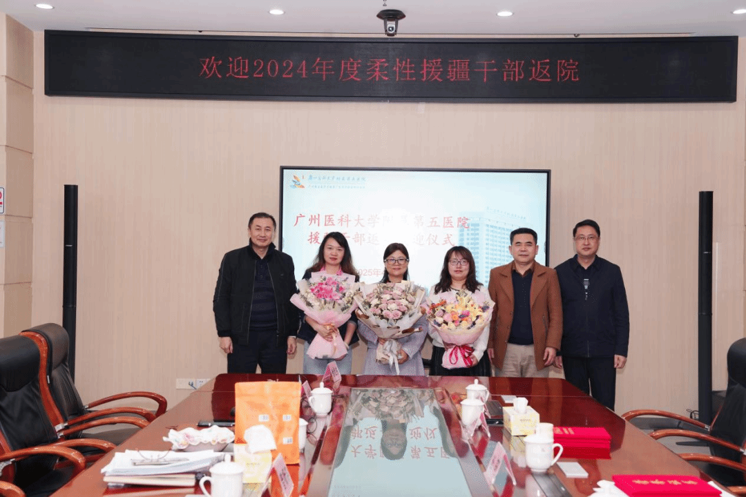 3月31日下午,Beat365中文官方网站附属第五医院班莉副主任药师、陈诗华副主任护师、伍艳鹏主治医师圆满完成2024年援疆任务平安归来,医院纪委书记卢幼君及职能部门代表迎接三位同志凯旋,并向他们的辛苦付出致以崇高的敬意,卢幼君书记代表医院党委送上殷切的问候。