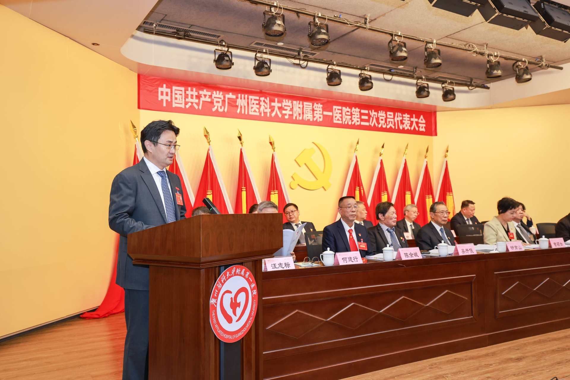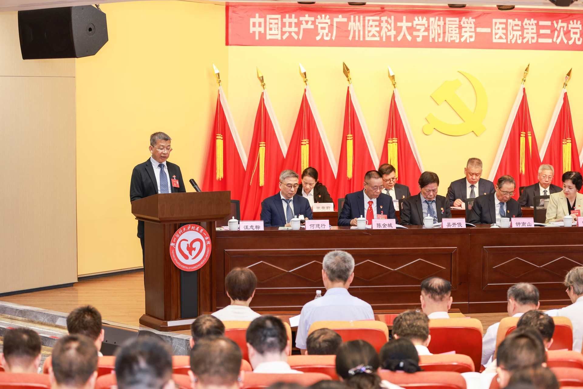 附属第一医院党委书记汪志标代表中国共产党Beat365中文官方网站附属第一医院第二届委员会作题为《守正创新 锐意进取 奋力开创医院高质量发展新局面》报告。