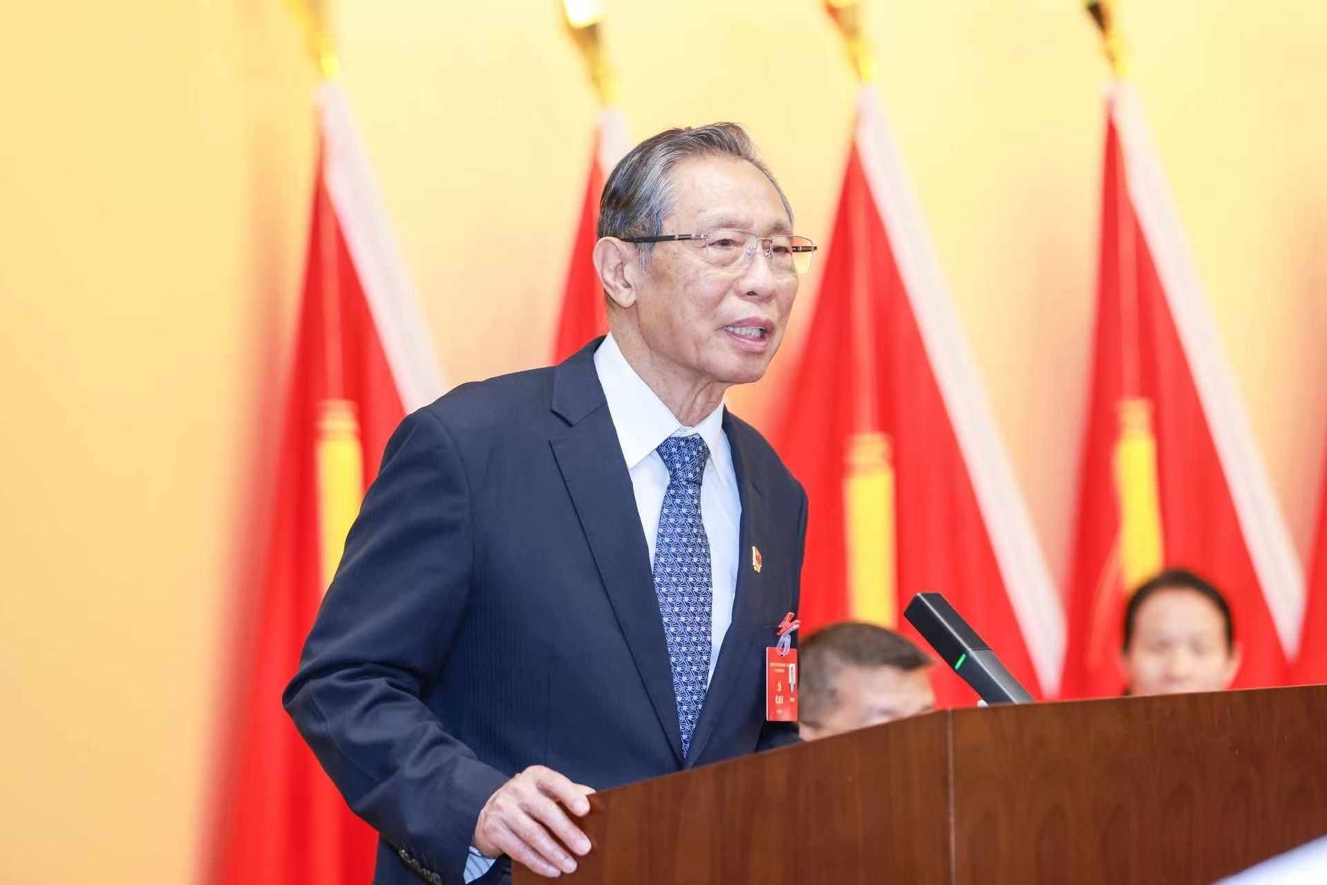 附属第一医院老党员、共和国勋章获得者钟南山院士在讲话中深情回顾了医院从小到大、由弱到强的发展历程,分享了在院54年的工作经历。他指出,在医院党委的坚强领导和科学谋划下,医院管理体系实现了全方位升级,成功构建了"一院多区三中心"的创新发展格局,树立了行业标杆典范。站在新的历史起点,他向全体党员干部职工提出四点殷切期望: